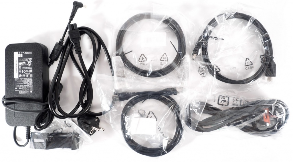Блок питания в мониторе - внешний. Паразитные звуки во время работы на любых настройках не отмечены, но тут всё может зависеть от экземпляра и качества электросети в рабочем помещении.