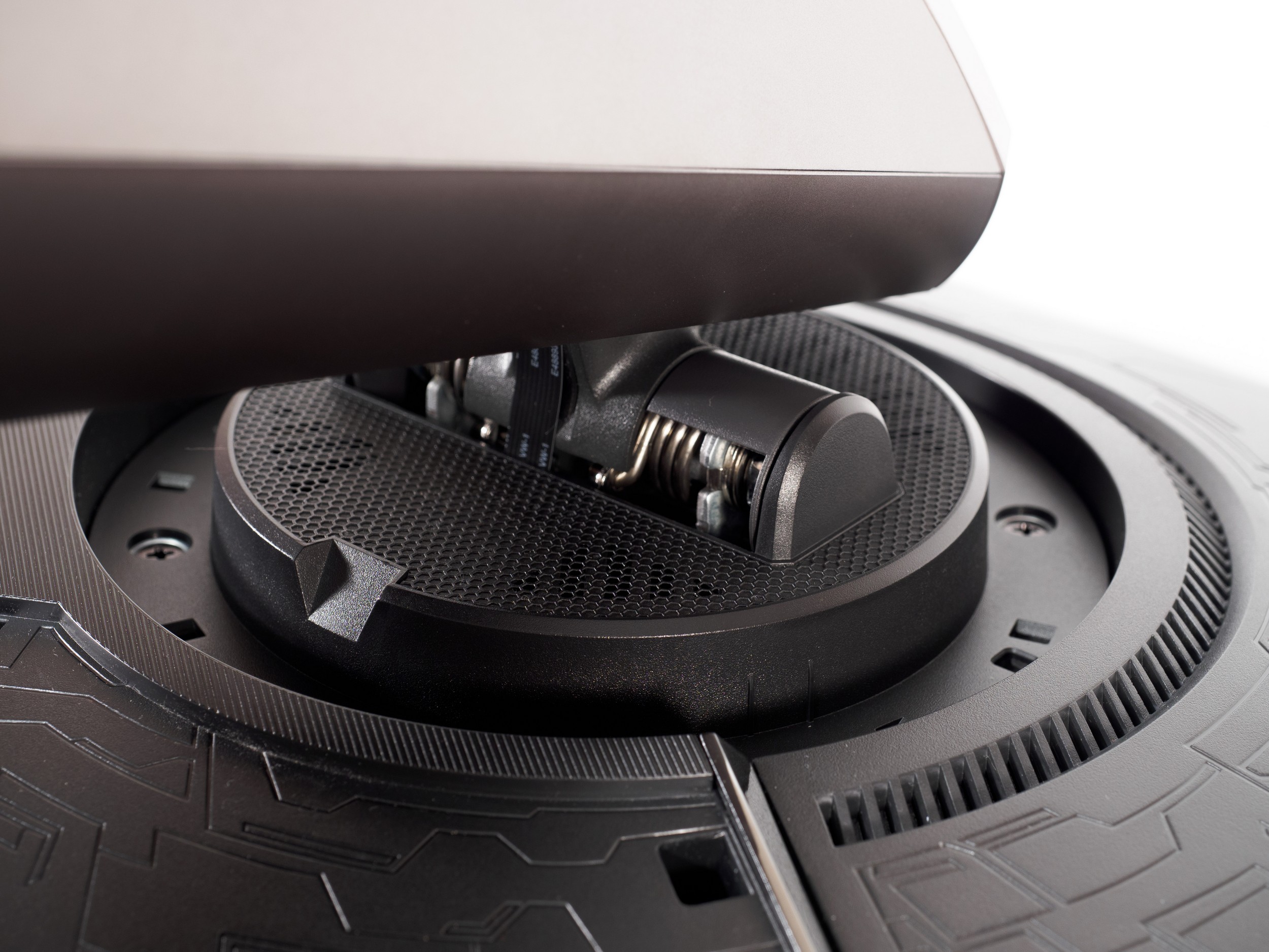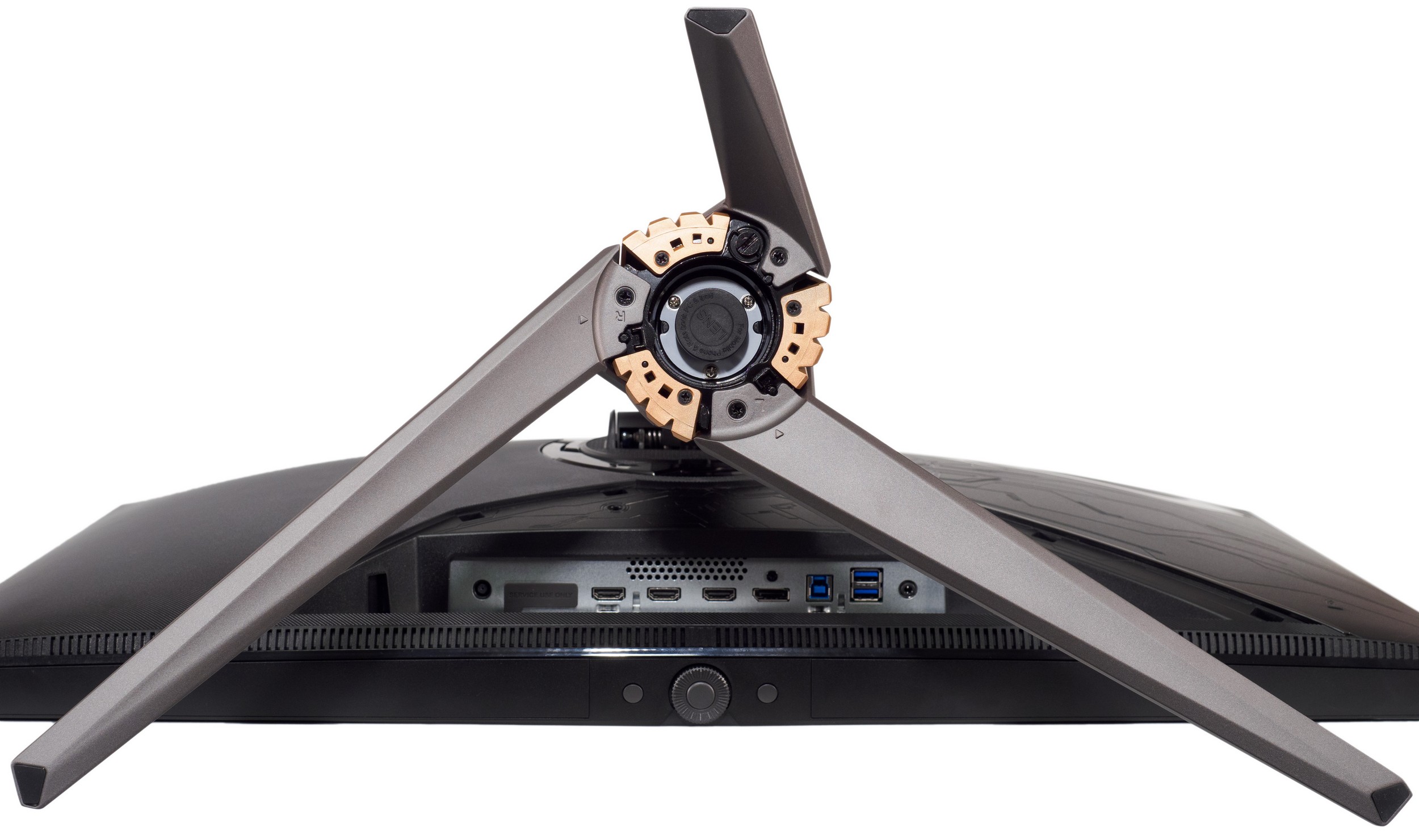 Сложносочинённая «закрученная» подставка с тремя тонкими ножками и мощной центральной колонной – ещё одна из отличительных элементов новинки, ярко выделяющая её на фоне мониторов других брендов.