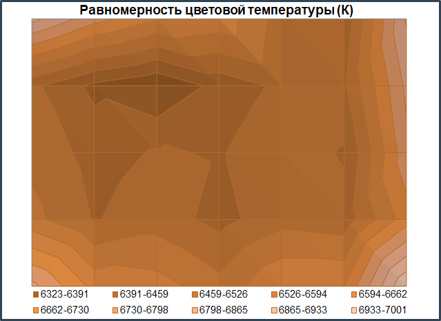 Теперь перейдём к рассмотрению равномерности цветовой температуры на всей площади экрана.