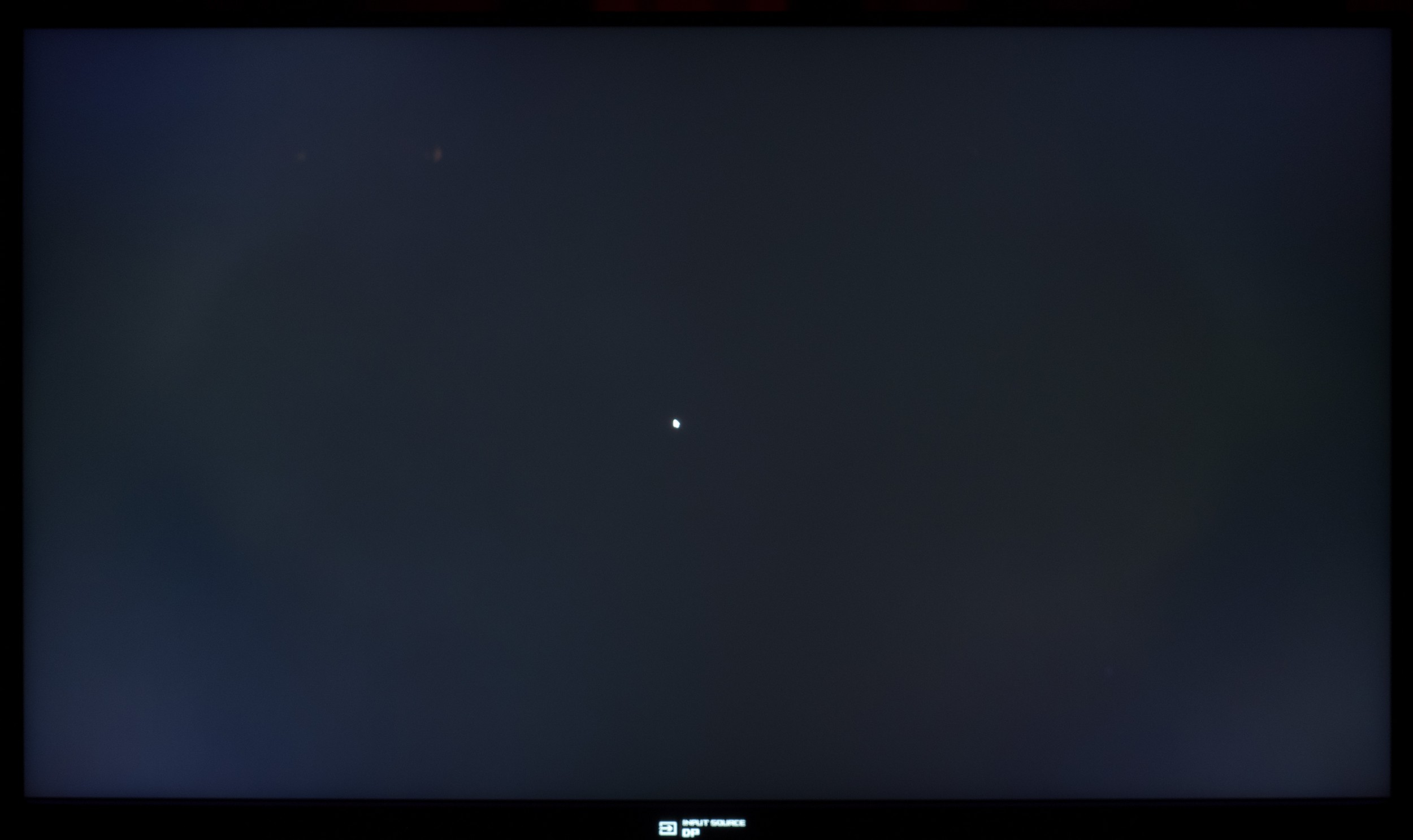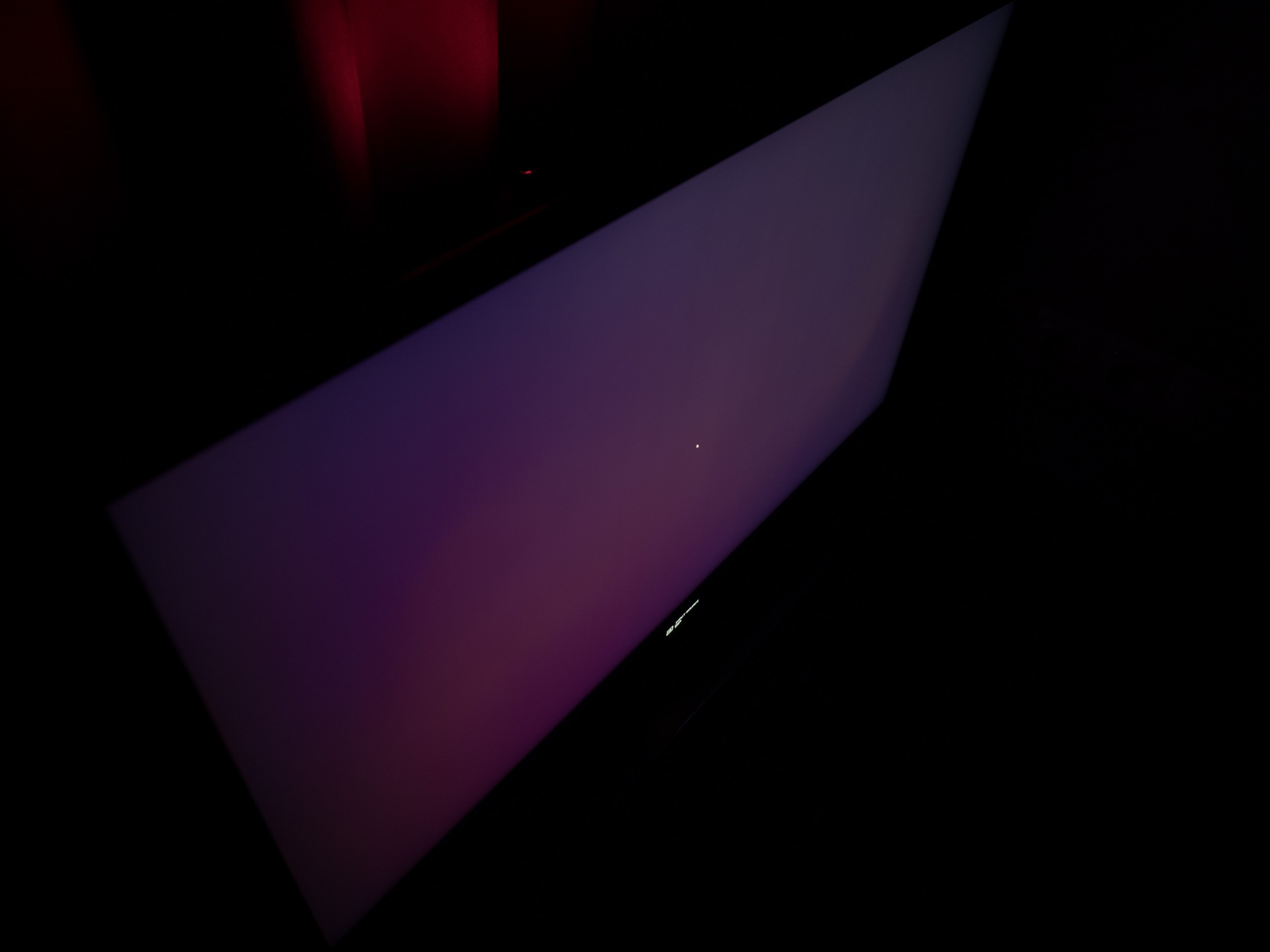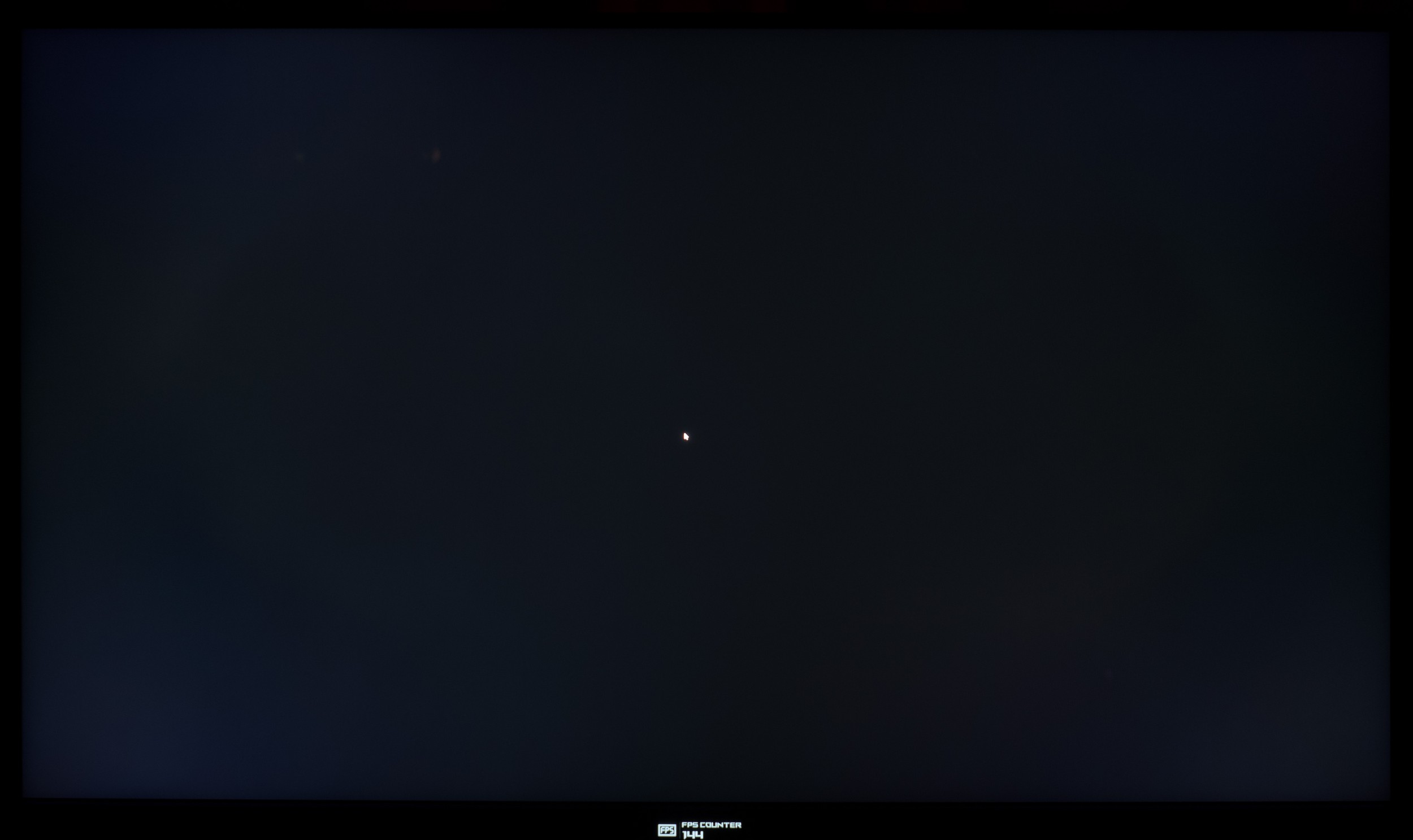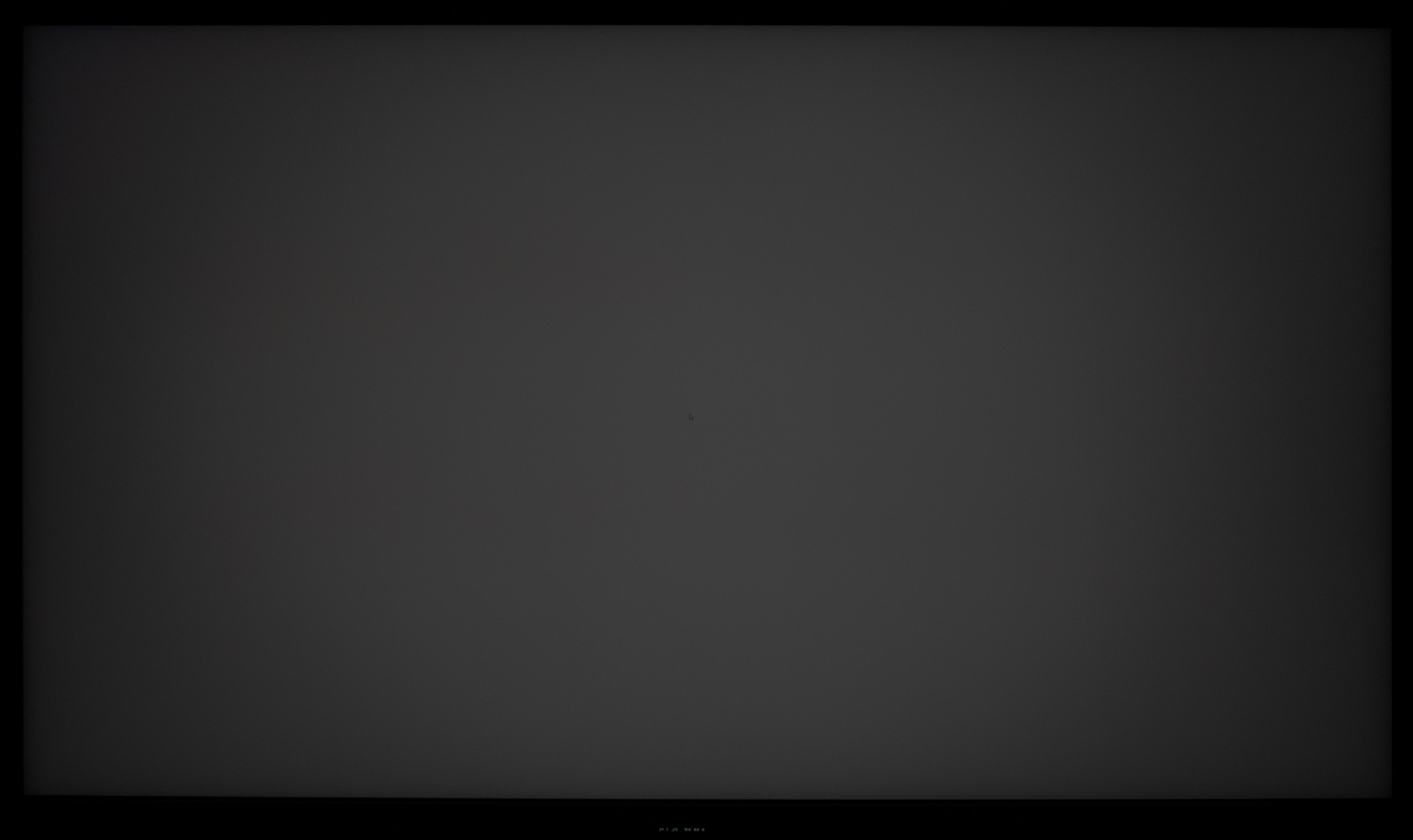 Теперь рассмотрим черный фон, оценив его «равномерность» по двум фотографиям, сделанным на разном отдалении от экрана (~70 см и 150 см), чтобы вы могли наглядно оценить влияние уже всем надоевшего Glow-эффекта и узнать реальную равномерность подсветки без его учёта.