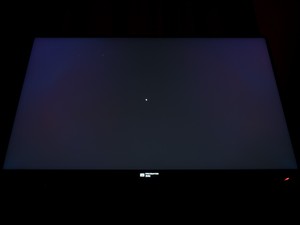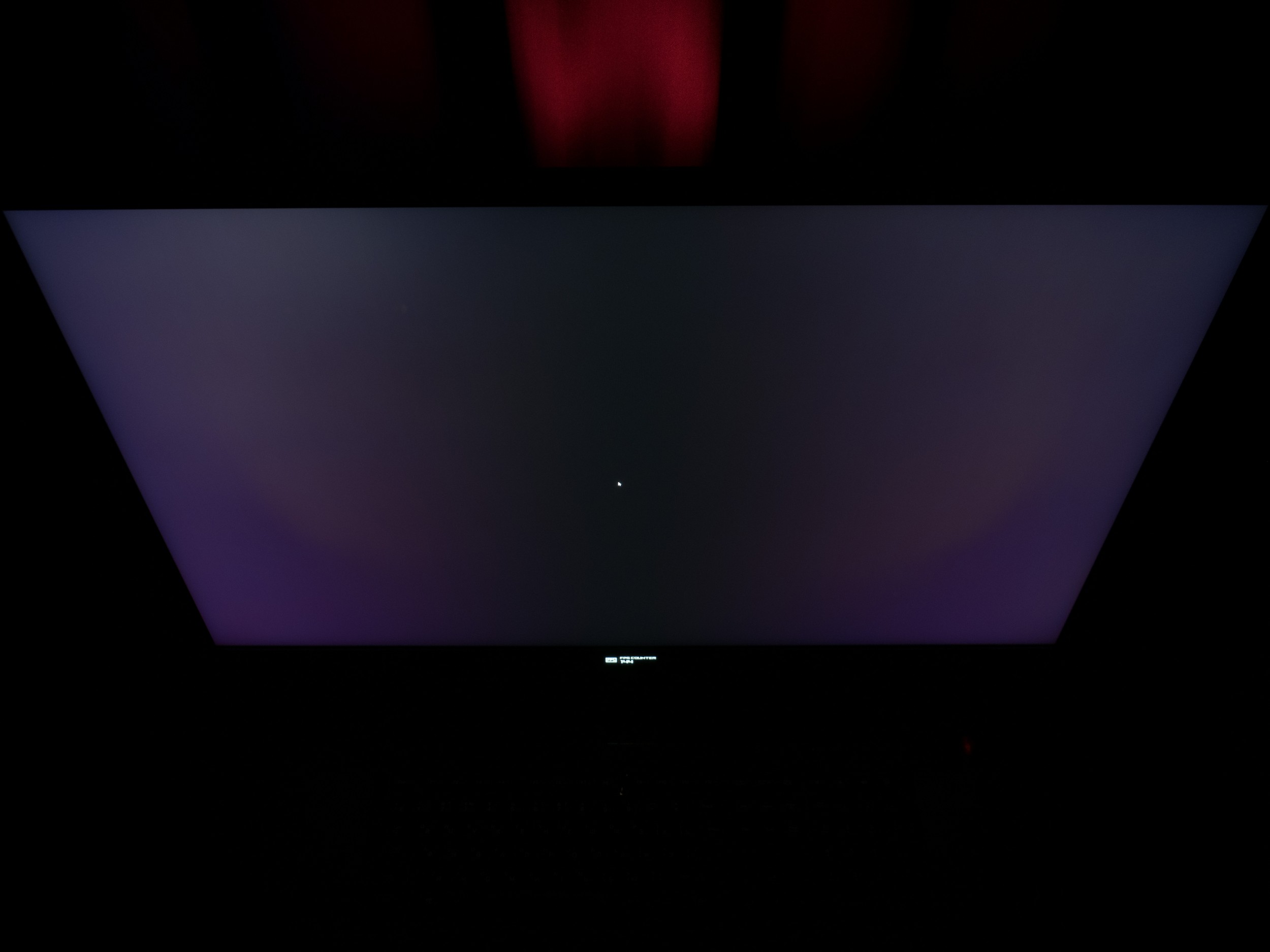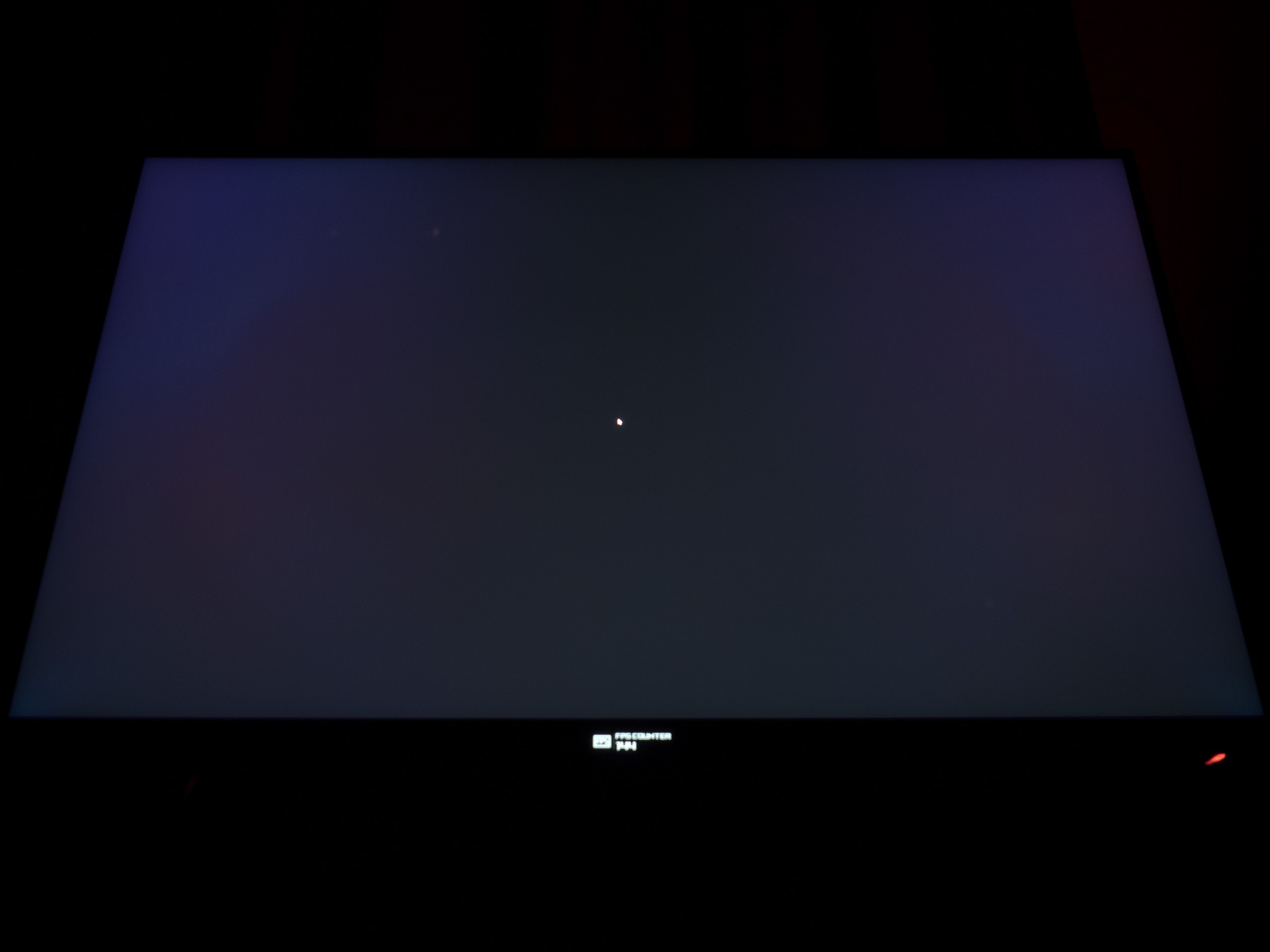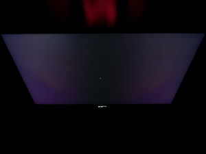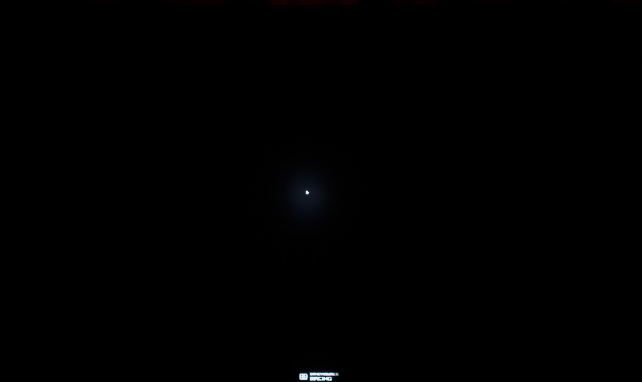 Теперь рассмотрим черный фон, оценив его «равномерность» по двум фотографиям, сделанным на разном отдалении от экрана (~70 см и 150 см), чтобы вы могли наглядно оценить влияние уже всем надоевшего Glow-эффекта и узнать реальную равномерность подсветки без его учёта.