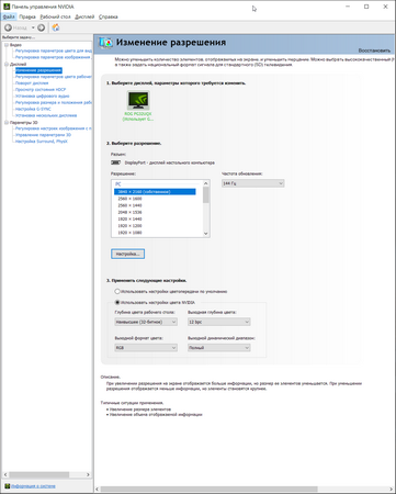 Нативная частота используемой в мониторе матрицы составляет 144 Гц и эта цифра становится легко доступна в полноценном RGB-режиме без сжатия (цветовой субдискретизации) благодаря применению технологии Display Stream Compression на базе протокола DP версии 1.4. Заявленное время отклика при этом сохранилось на привычном уровне в 4 мс GtG и никаких специальных возможностей вида «вставка чёрного кадра» в мониторе не предусмотрено. Другими словами, рассчитывать на максимально высокую скорость не стоит, а панель не следует рассматривать в качестве альтернативы так называемых Fast-IPS дисплеев.