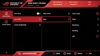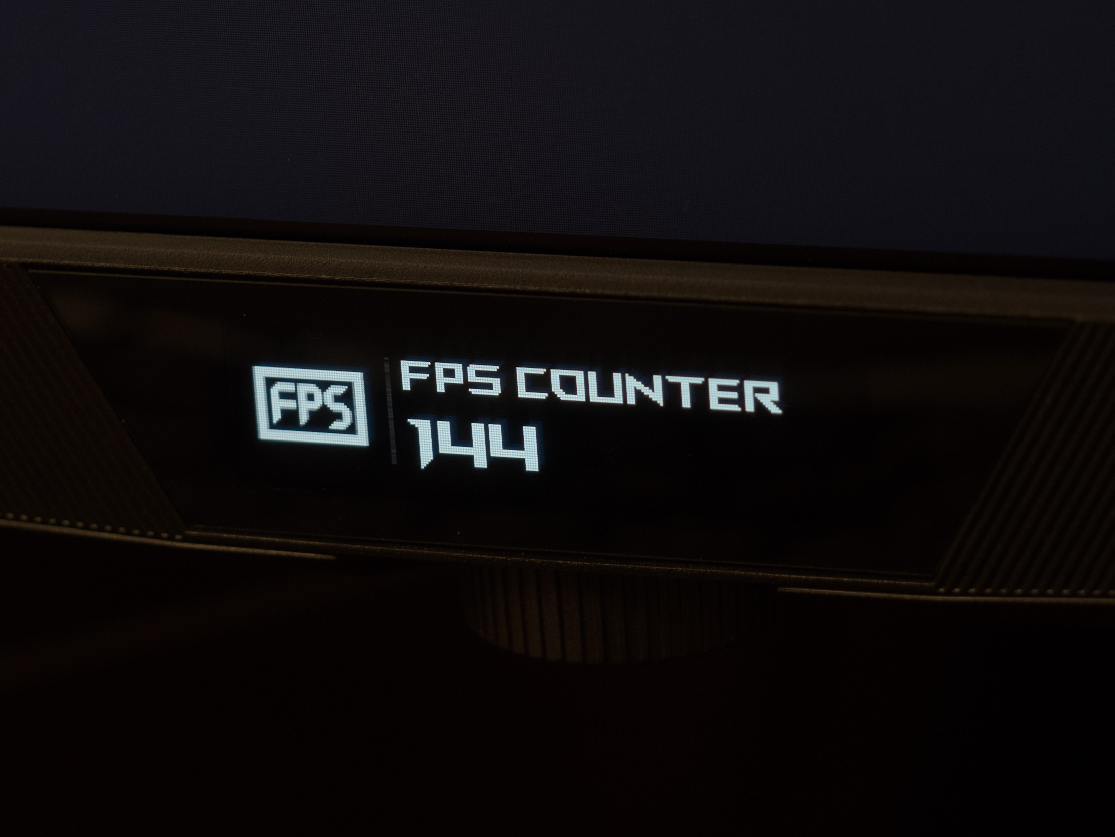 Дополняет удобство навигации OLED-экран, на который по умолчанию можно вывести логотип ROG, используемый вариант подключения, установленный режим GameVisual и счётчик кадров. С помощью же дополнительно устанавливаемого ПО от ASUS пользователь может активировать вывод на маленький информационный экран температуру того или иного компонента, уровень нагрузки на компоненты системы, скорость вращения вентиляторов и многое другое.