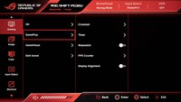 Всего в меню семь разделов. В первом — под названием Gaming — пользователю предлагается установить степень разгона матрицы (OD), настроить функции GamePlus, выбрать один из режимов GameVisual, активировать Adaptive-Sync (DP), а также выставить степень высветления теней (Dark Boost).