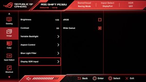 Для ручной настройки и калибровки мы перешли в заводской режим и переключили монитор в расширенный ЦО. Каких-то значимых изменений на фоне стандартных настроек не произошло. Тоже самое можно сказать и про ручную настройку в режиме со стандартным цветовым охватом (SDR Input).