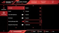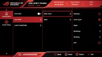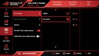 Среди уже хорошо известных технологий, применяемых в мониторе, мы можем отметить игровые режимы GameVisual, наэкранные помощники GamePlus, систему высветления теней, а среди новых: лёгкий переход от широкого цветового охвата к эмуляции sRGB для любого из предустановленных режимов и OLED-дисплей небольшого размера для вывода различного рода информации.