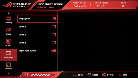 Использование аппаратного модуля G-Sync второго поколения не привело к ограничениям среди доступных интерфейсов, но рассчитывать на работу технологии адаптивной синхронизации от «зелёных» стоит только при использовании DP 1.4. Что же касается HDMI, то все три порта используют версию 2.0, а поэтому про полноценную поддержку приставок последнего поколения речи не идёт и это, пожалуй, одно из существенных упущений со стороны инженеров компании.