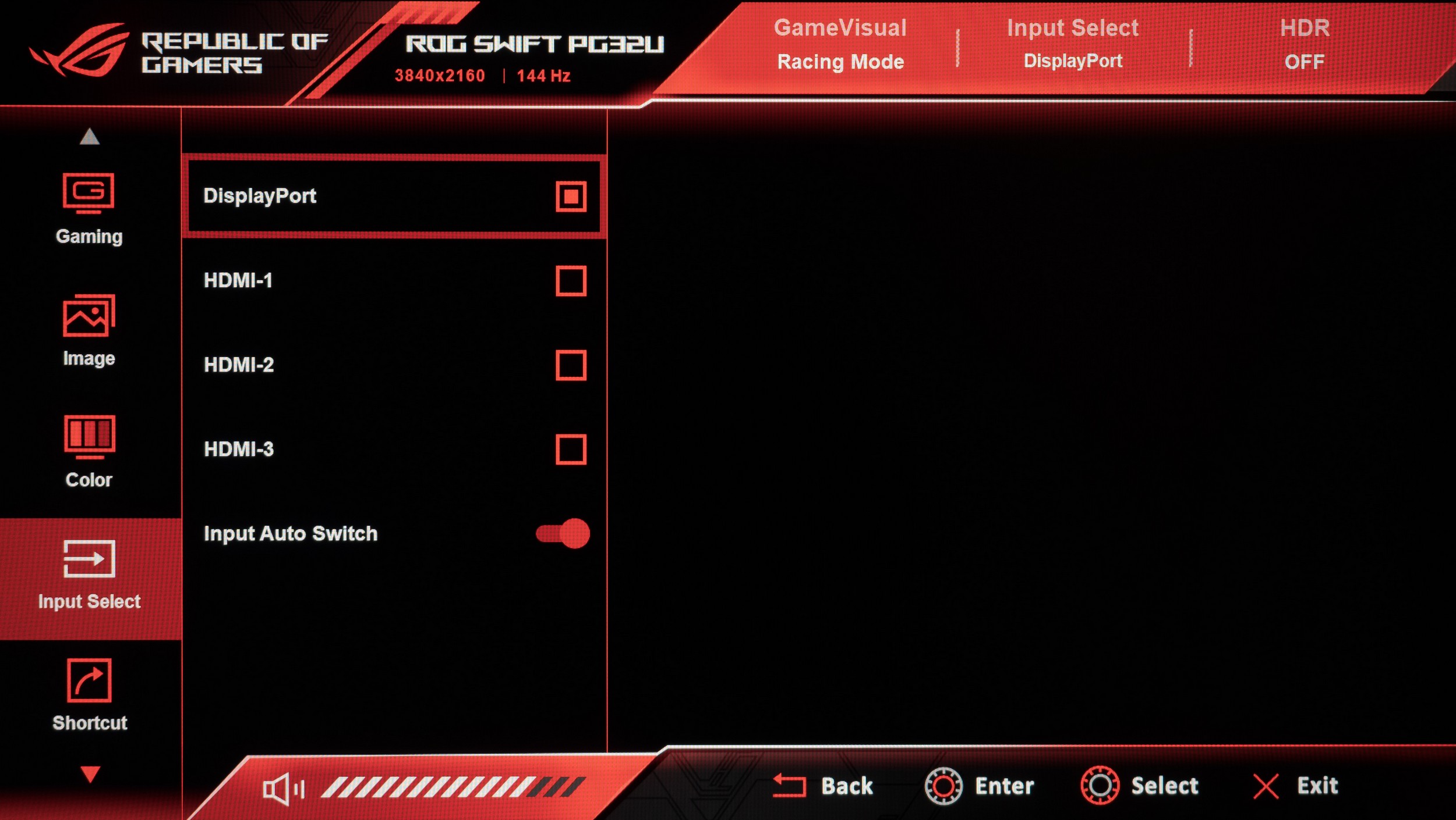 Выбрать источник сигнала и активировать автоматическое определение можно в разделе Input Select.