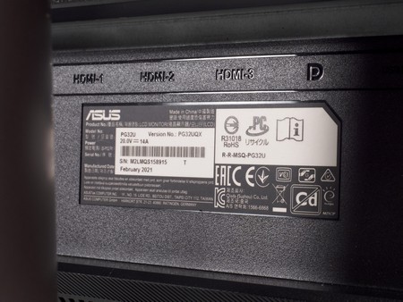 По одной из наклеек можно узнать серийный номер монитора, место производства (Китай) и другие – менее полезные данные.