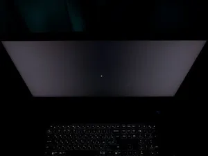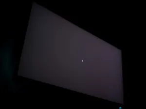 Теперь рассмотрим черный фон, оценив его «равномерность» по двум фотографиям, сделанным на разном отдалении от экрана (~70 см и 150 см), чтобы вы могли наглядно оценить влияние уже всем поднадоевшего Glow-эффекта и узнать реальную равномерность подсветки без его учёта.