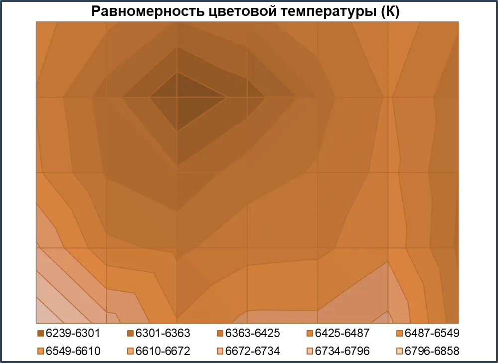 Давайте теперь перейдём к рассмотрению равномерности цветовой температуры на всей площади экрана.