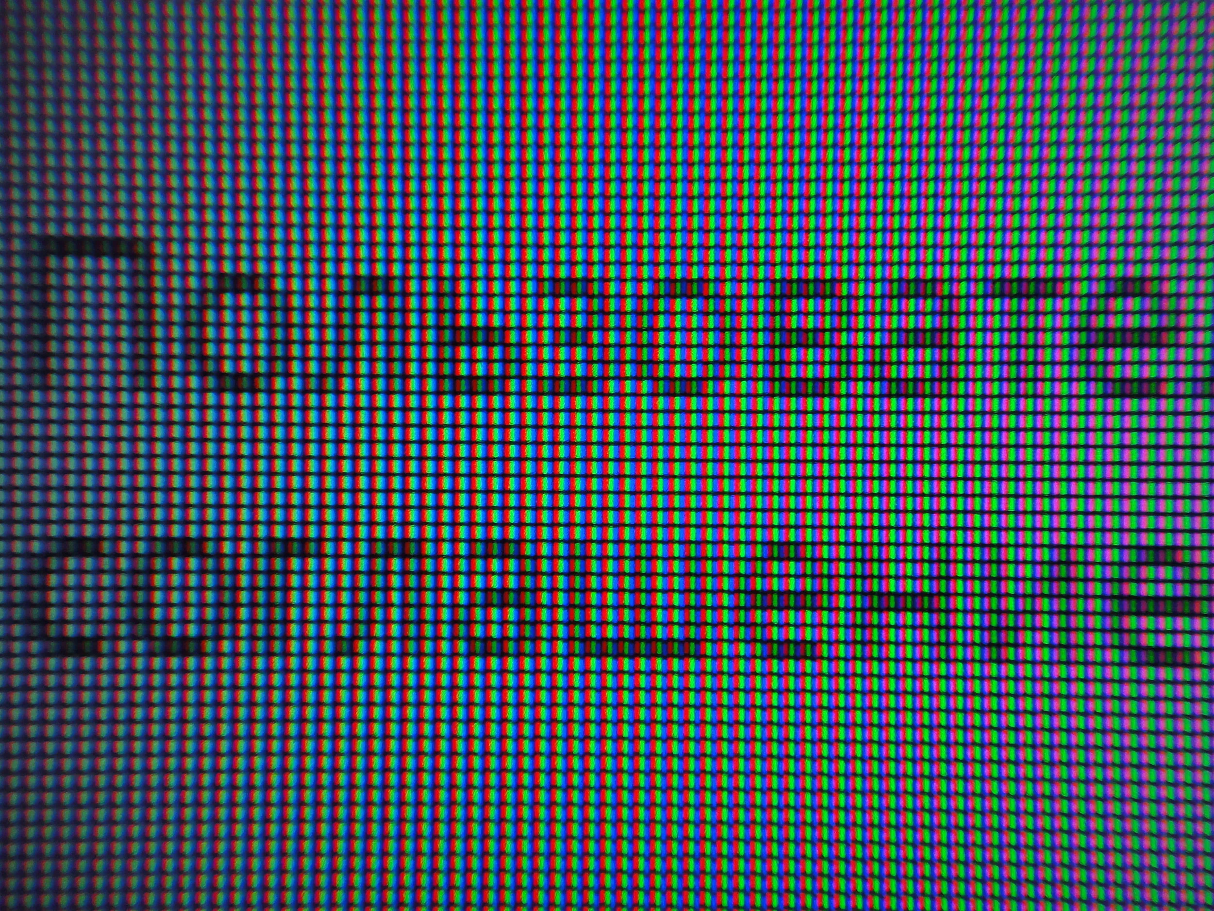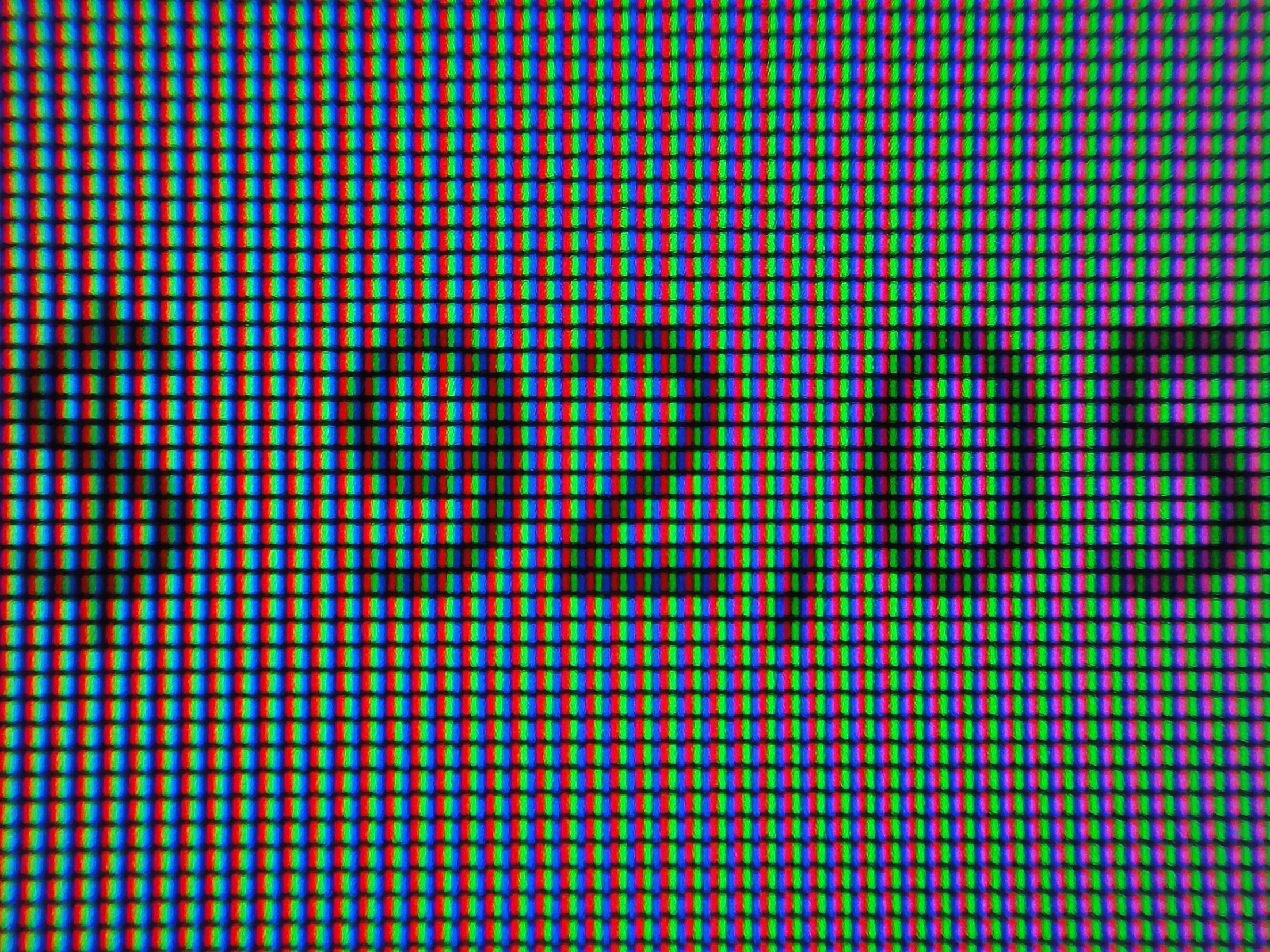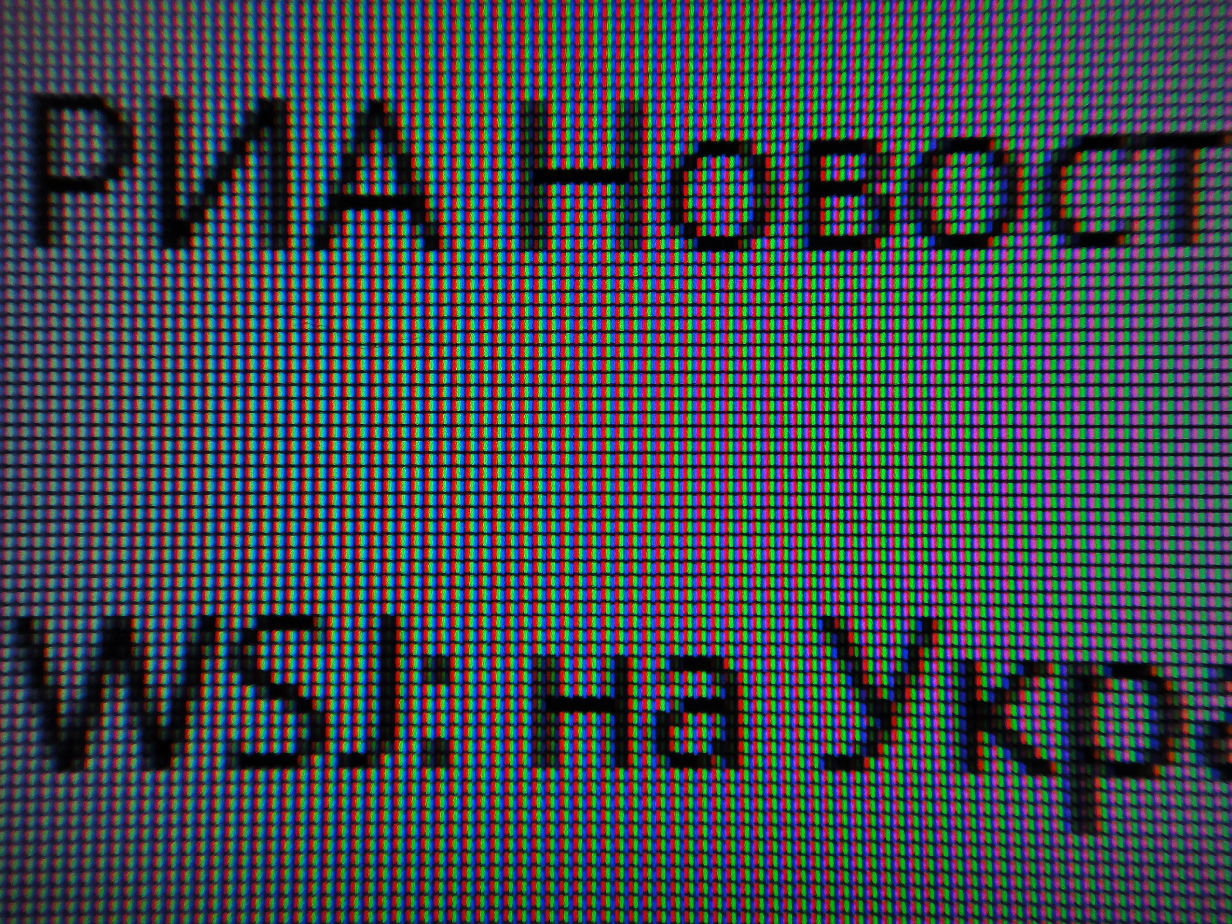 В первую очередь видна стандартная структура пикселей для современных IPS панелей. Используемая поверхность не столь грубая, как у старых матовых IPS, но так называемый кристаллический эффект всё же заметен и может слегка усиливаться при взгляде под углом. От эффекта же под названием Cross-Hatching монитор Dell Alienware AW2524H не страдает.