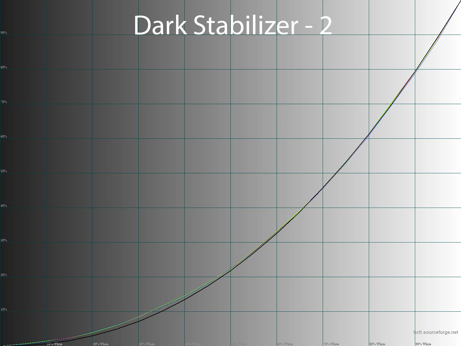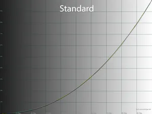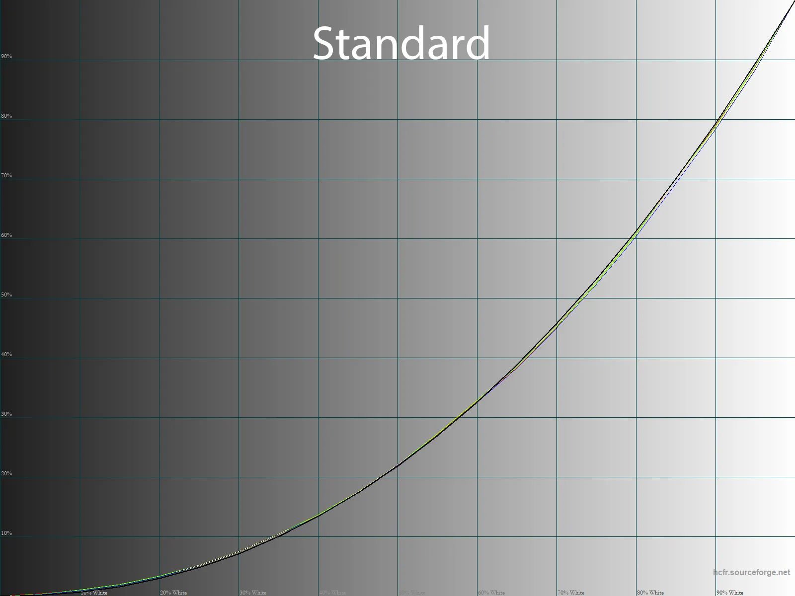 Герой обзора при стандартных установках показывает практически референсную точность установки гамма-кривых и соответствующий им правильный контраст картинки на экране с хорошей различимостью в тенях (слегка усиленной). Нет проблем с балансом серого, отсутствует разброс между RGB-кривыми, но точка белого вместе с другими смещена в холодную область (~7000К).