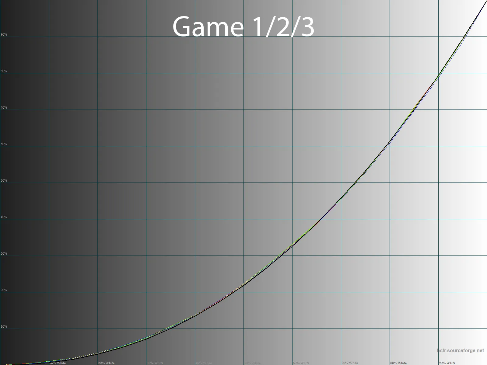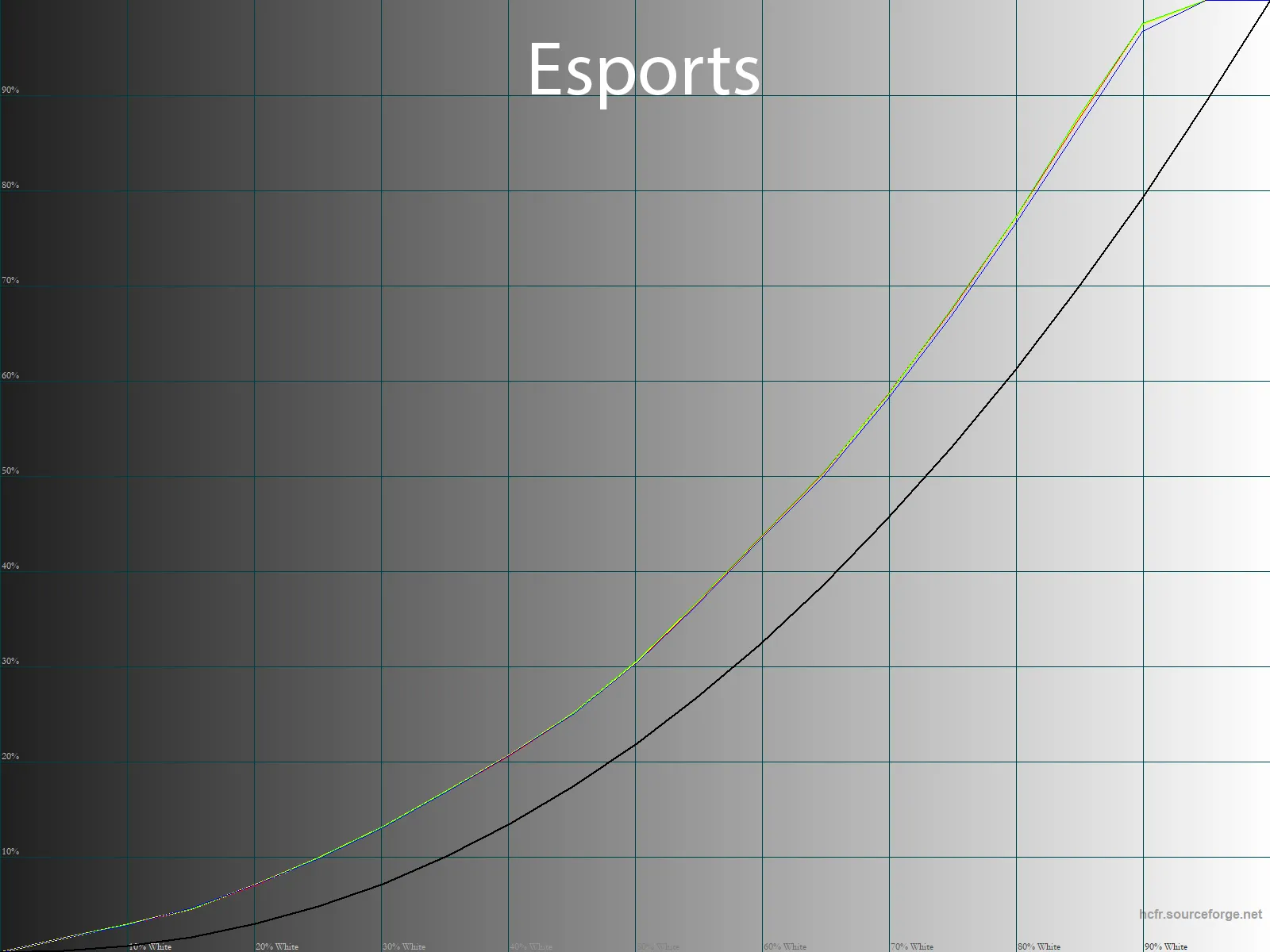С точки зрения установки точки белого монитор Dell демонстрирует среднюю точность, как в Standard Mode, так и в eSports и Game 1-3 – везде примерно 7000К. Знакомого же ранее режима ComfortView у модели нет, поскольку все необходимые изменения произведены на уровне спектра подсветки новой матрицы и программное «утепление» картинки не требуется.