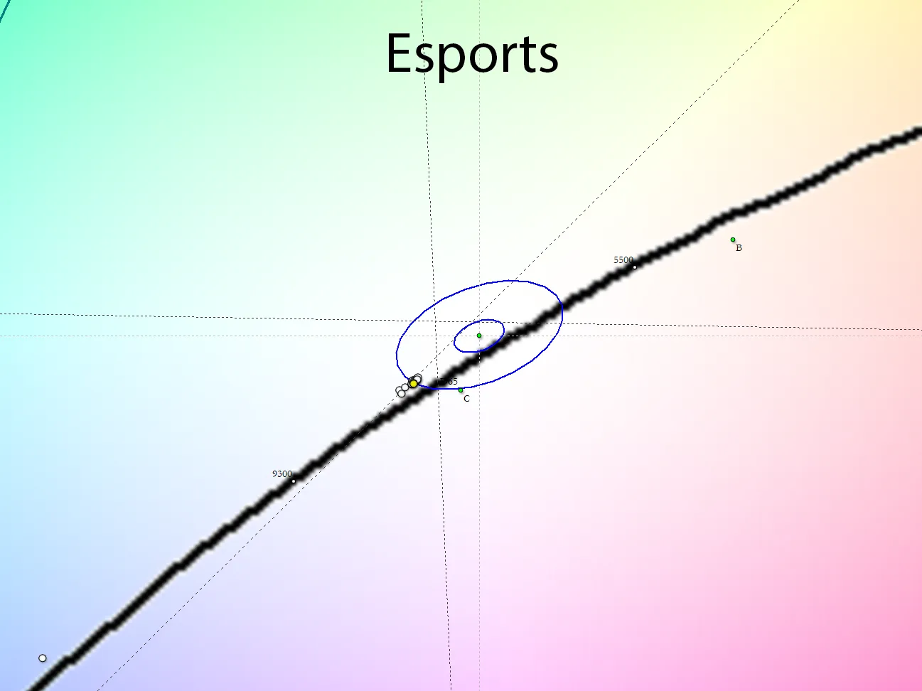 Единственное же, что следует отметить в вопросе цветопередачи, так это резко сниженную контрастность в режиме Esports. Вам может показаться это плюсом (но это странно), однако в действительности картинка на мониторе смотрится очень плохо, о чём свидетельствуют и отклонения DeltaE94. В других проверенных режимах такой проблемы нет, но и высоких результатов тоже, поскольку возможности цветопередачи AW2524H находятся между двумя стандартами и в качестве референса для сравнения ни один из них полностью не подходит.