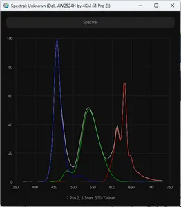 В мониторе AW2524H использована IPS матрица со слегка расширенным цветовым охватом, превышающем sRGB буквально на 15-20 % (по нашей предварительной оценке, затрагивающей полученный спектр подсветки).