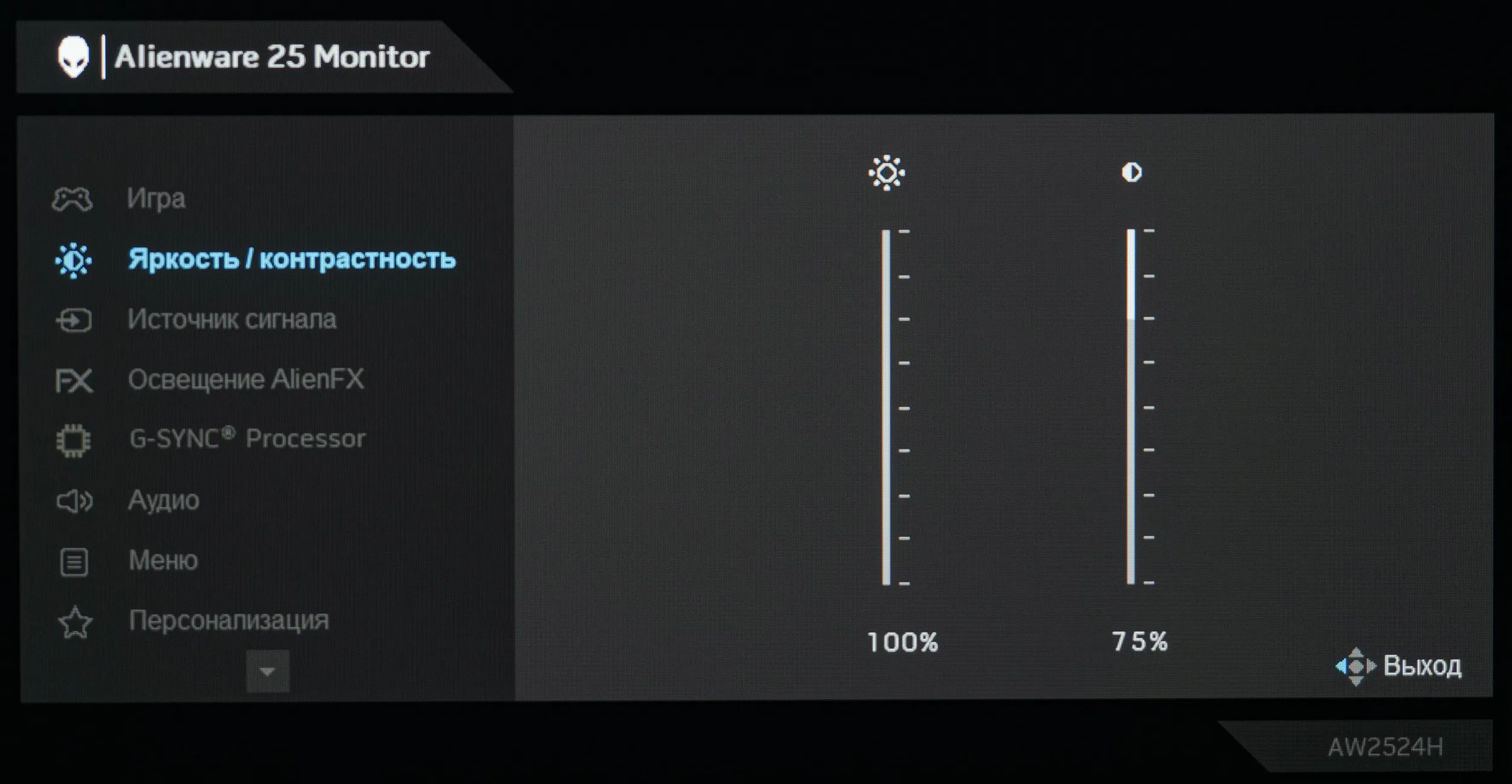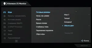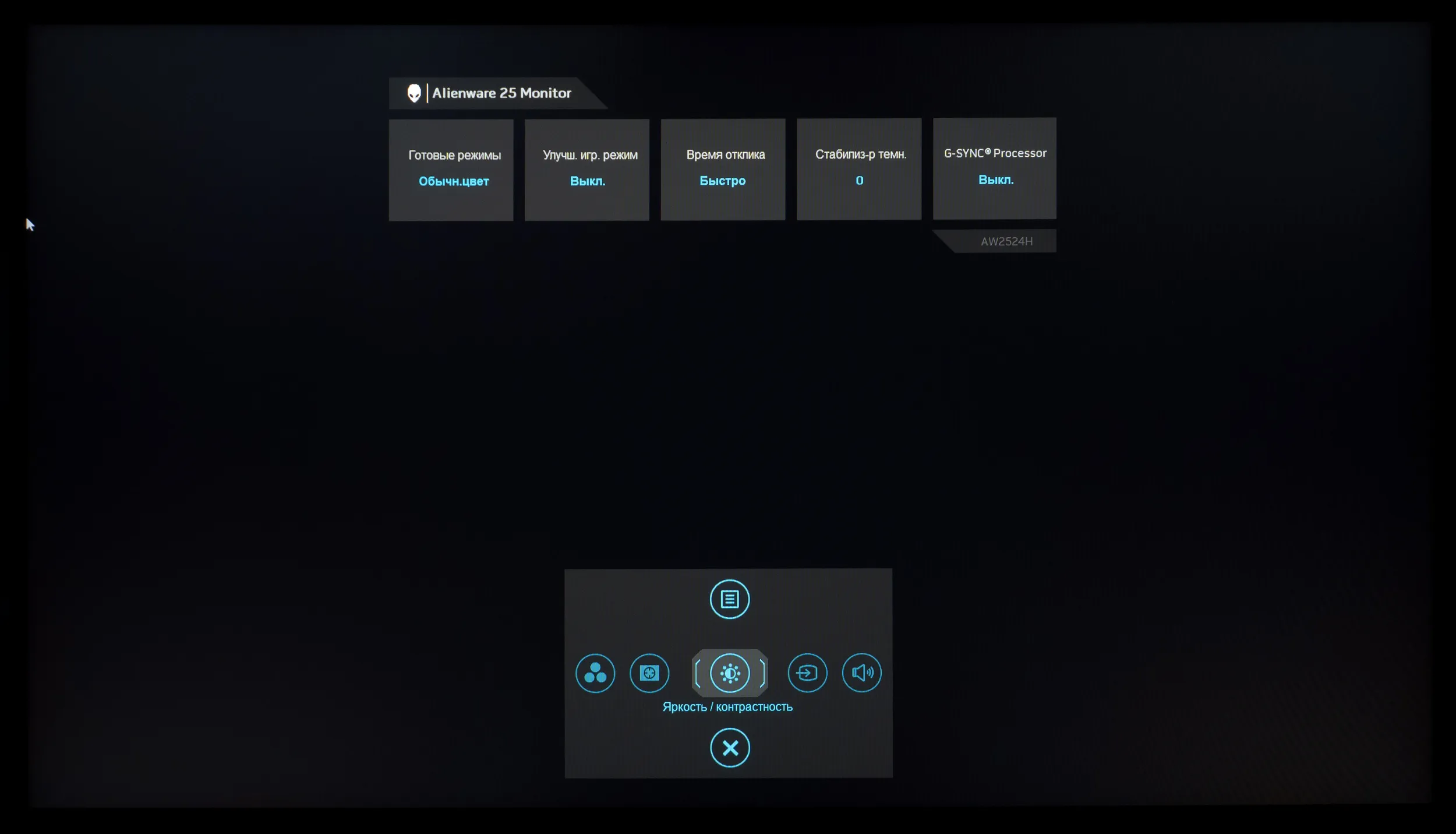 У новинки Alienware есть встроенный датчик освещённости без дополнительных настроек (только Выкл. и Вкл.), отрабатывающий максимально корректно, пускай и с видимым изменением яркости. В меню же есть пункт Dark Stabilizer, меняющий различимость крайних тёмных участков, что будет полезно для многих геймеров.