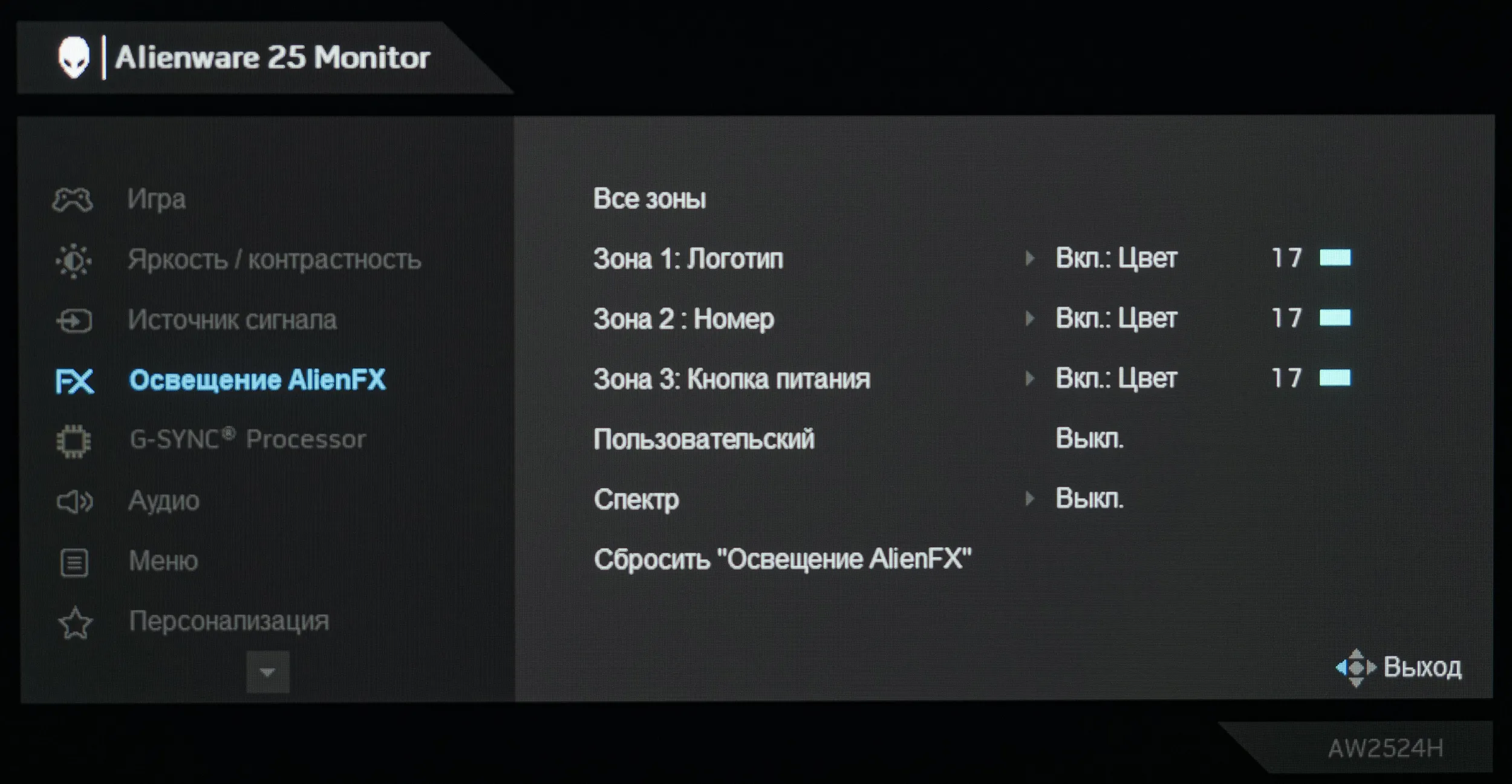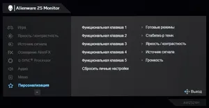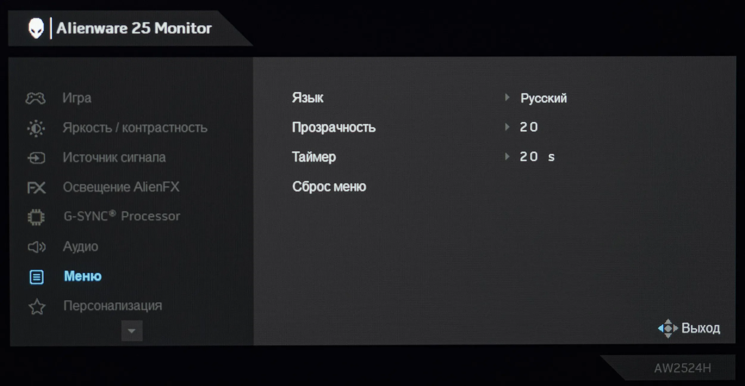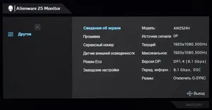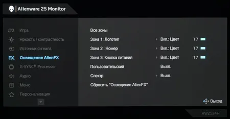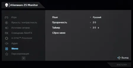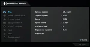Первое что можем отметить – построение меню практически не отличается от того, что вы могли видеть в других моделях Alienware. У новинки AW2524H целых 9 разделов меню.