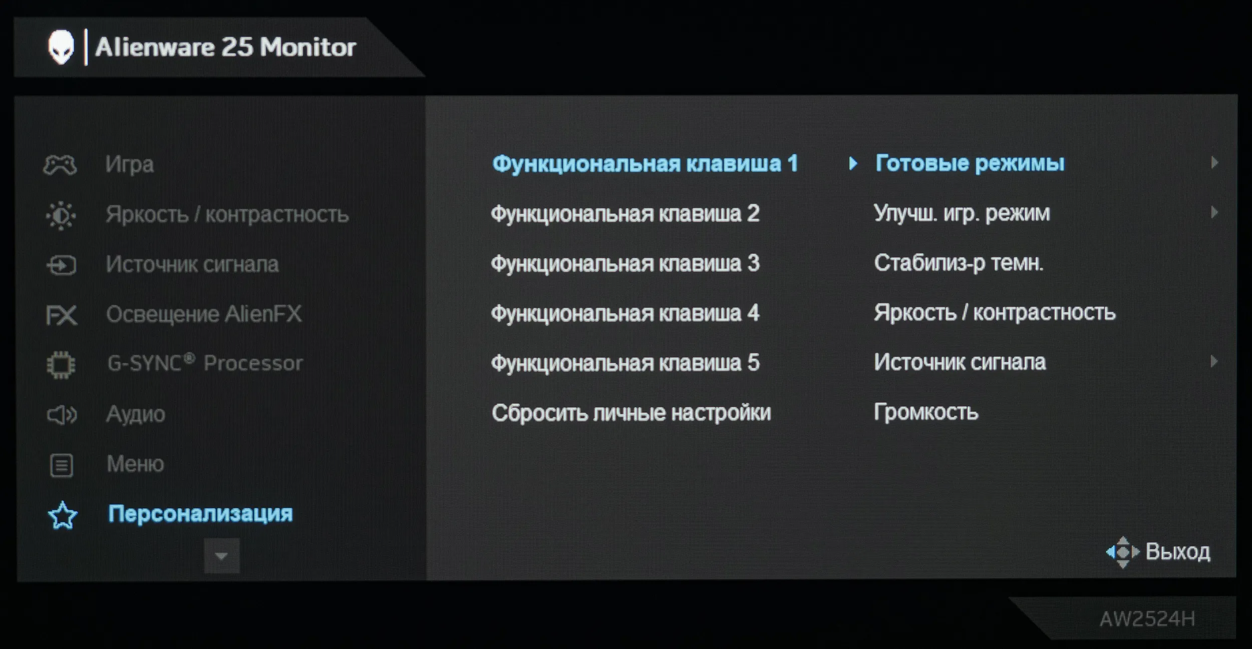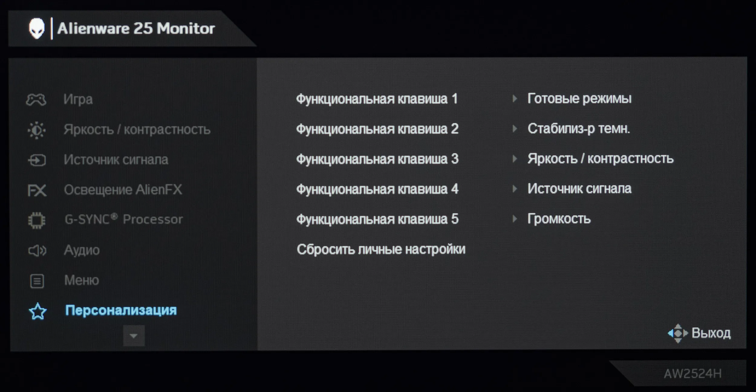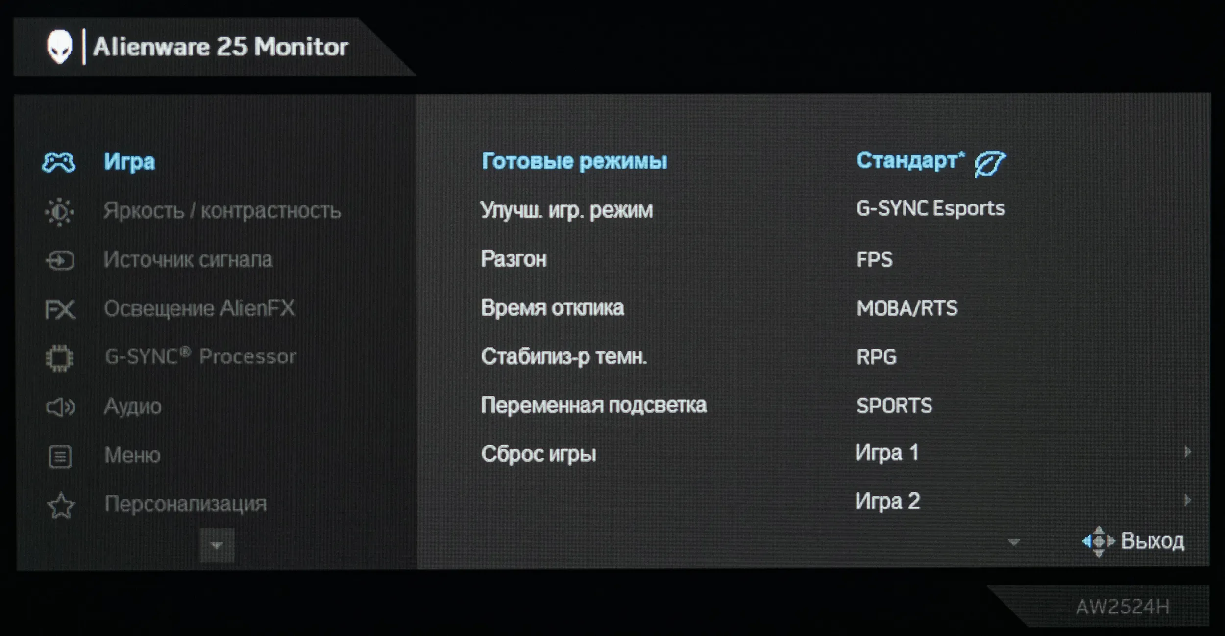 Первое что можем отметить – построение меню практически не отличается от того, что вы могли видеть в других моделях Alienware. У новинки AW2524H целых 9 разделов меню.