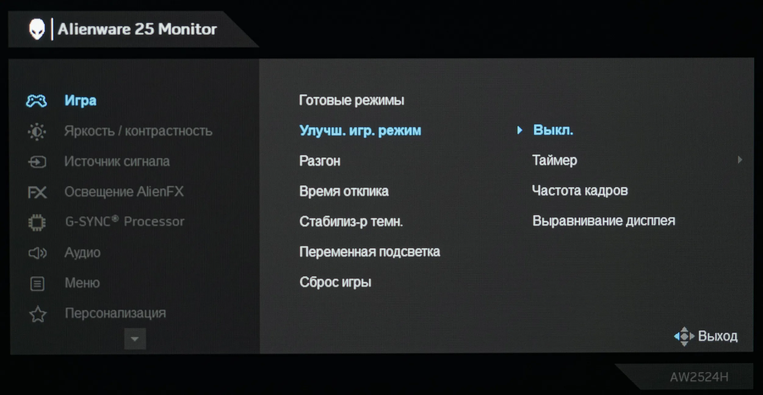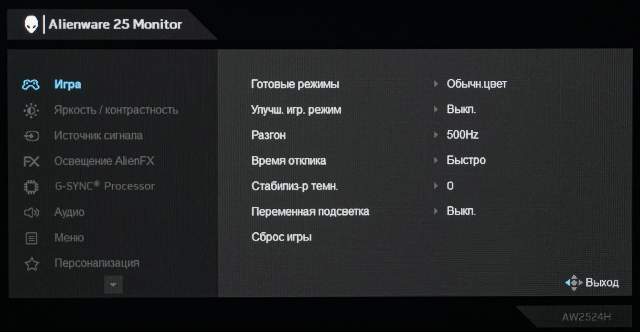 Производитель поработал совместно с поставщиком LCD панели над качеством разгона, а поэтому видимость артефактов у AW2524H стала ниже, чем у предшественников. Мы смело можем рекомендовать к использованию режим Super Fast, как наиболее оптимальный. Смысла же перехода в Extreme мы не увидели – оно того не стоит.