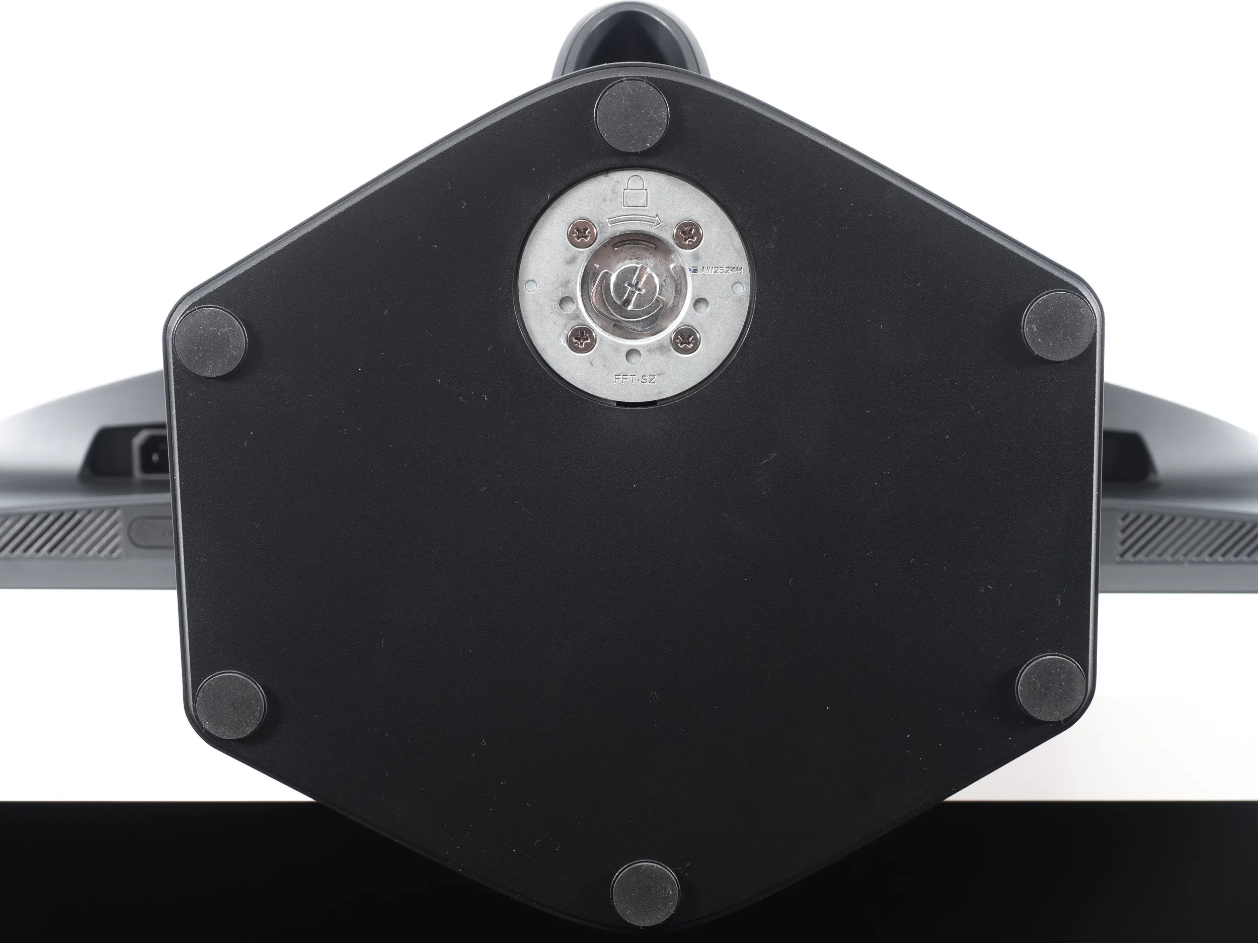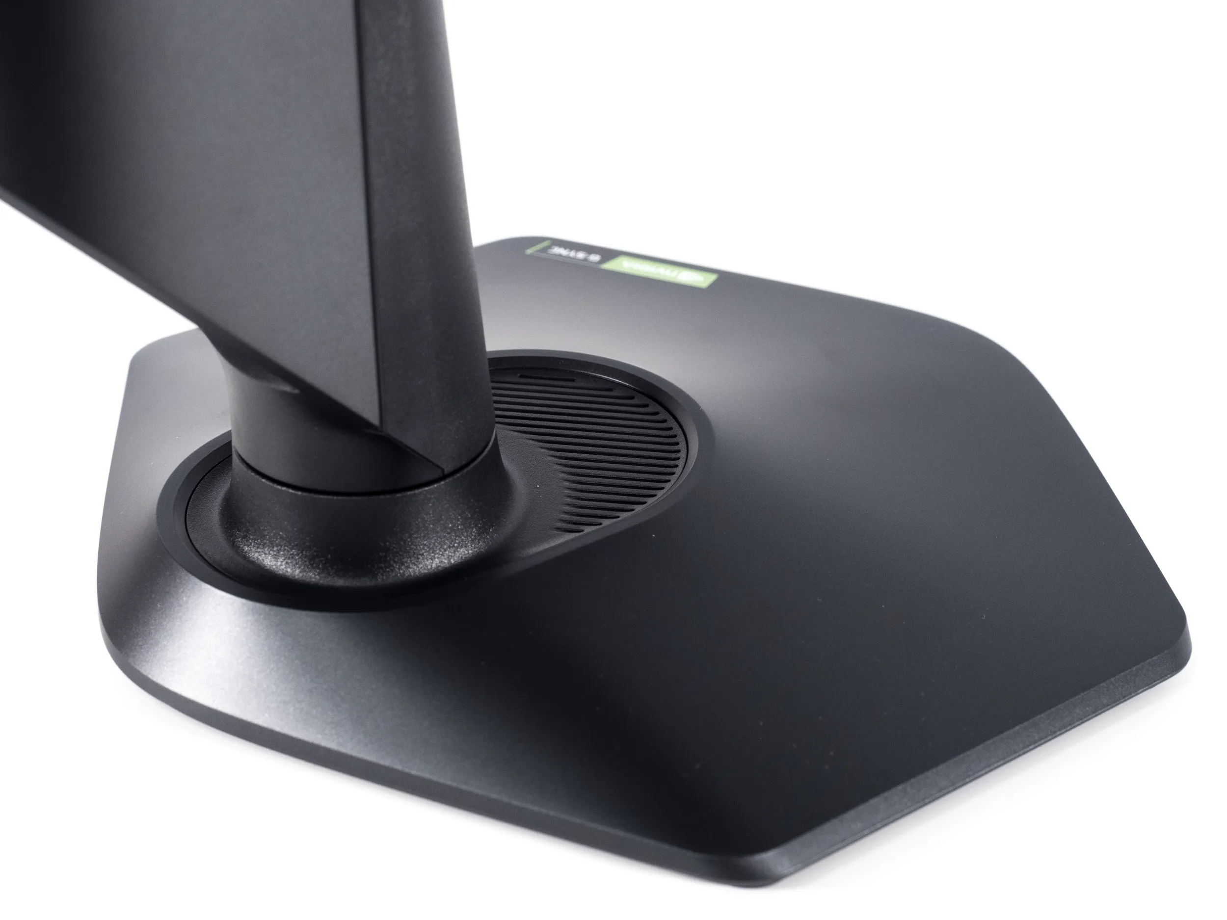 Все крепежные элементы, внутренности подставки и центральной колонны выполнены из металла. Для сцепления с рабочей поверхностью в подставке используется шесть крупных резиновых ножек, которым прекрасно удаётся удерживать монитор в одном положении, в том числе благодаря весу всей конструкции в сборе.