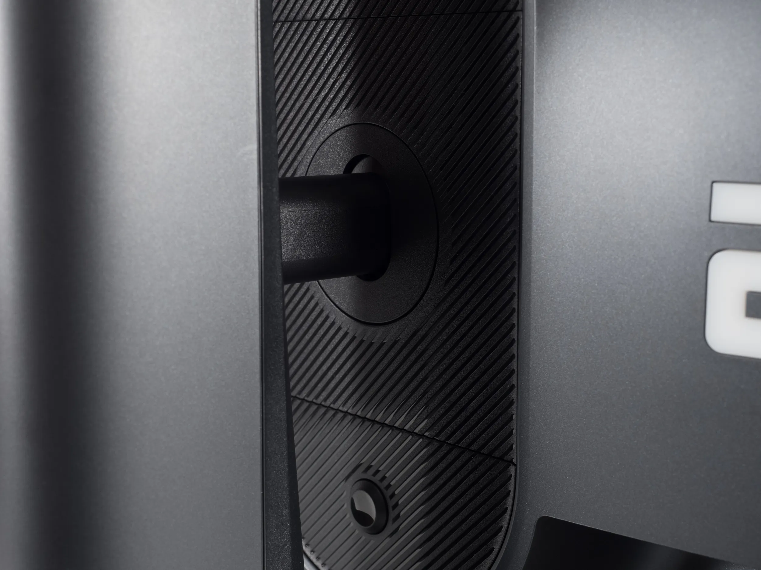 Центральная стойка крепится к корпусу монитора вполне стандартным способом - благодаря быстросъёмному механизму крепления. В случае необходимости модель можно повесить на VESA-совместимый кронштейн стандарта 100x100 мм. Для этого в месте крепления центральной колонны необходимо открутить четыре винта, которые в дальнейшем могут быть использованы совместно с выбранным кронштейном.