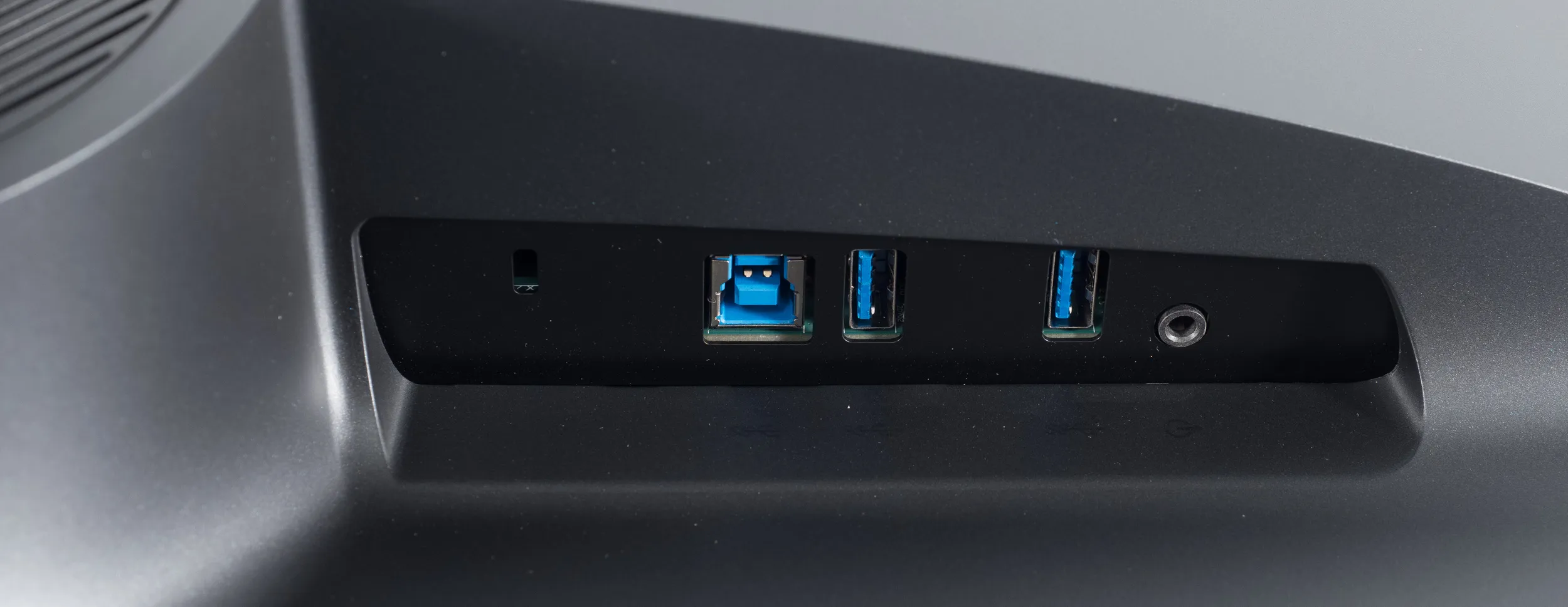 Модель Dell Alienware AW2524H оснащена сразу двумя HDMI 2.0 (с тем самым ограничением 240-250 Гц), DP версии 1.4, а с помощью целых четырёх USB 3.2 Gen1, часть из которых поддерживает быструю зарядку, удобно подключать различную компьютерную периферию в обход поиска свободных портов в ПК. Также у монитора присутствуют 3,5 мм аудиовыход и 3,5 мм линейный выход. Встроенная акустическая система, как и у других Alienware, не используется.