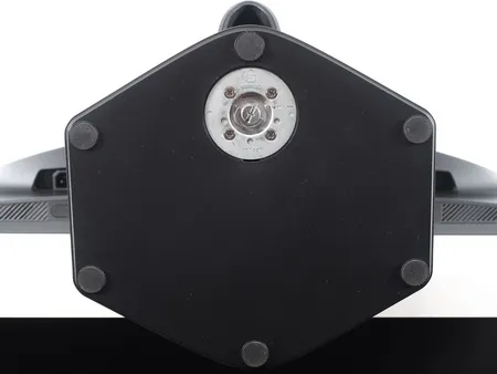 В сравнении с решением 2021 года у подставки монитора больше нет нескольких ножек. Теперь это монолитная платформа с шестью закруглёнными углами с покатанной формой от центра. Крепление центральной колонны смещено назад. К устойчивости всей конструкции нет никаких претензий.