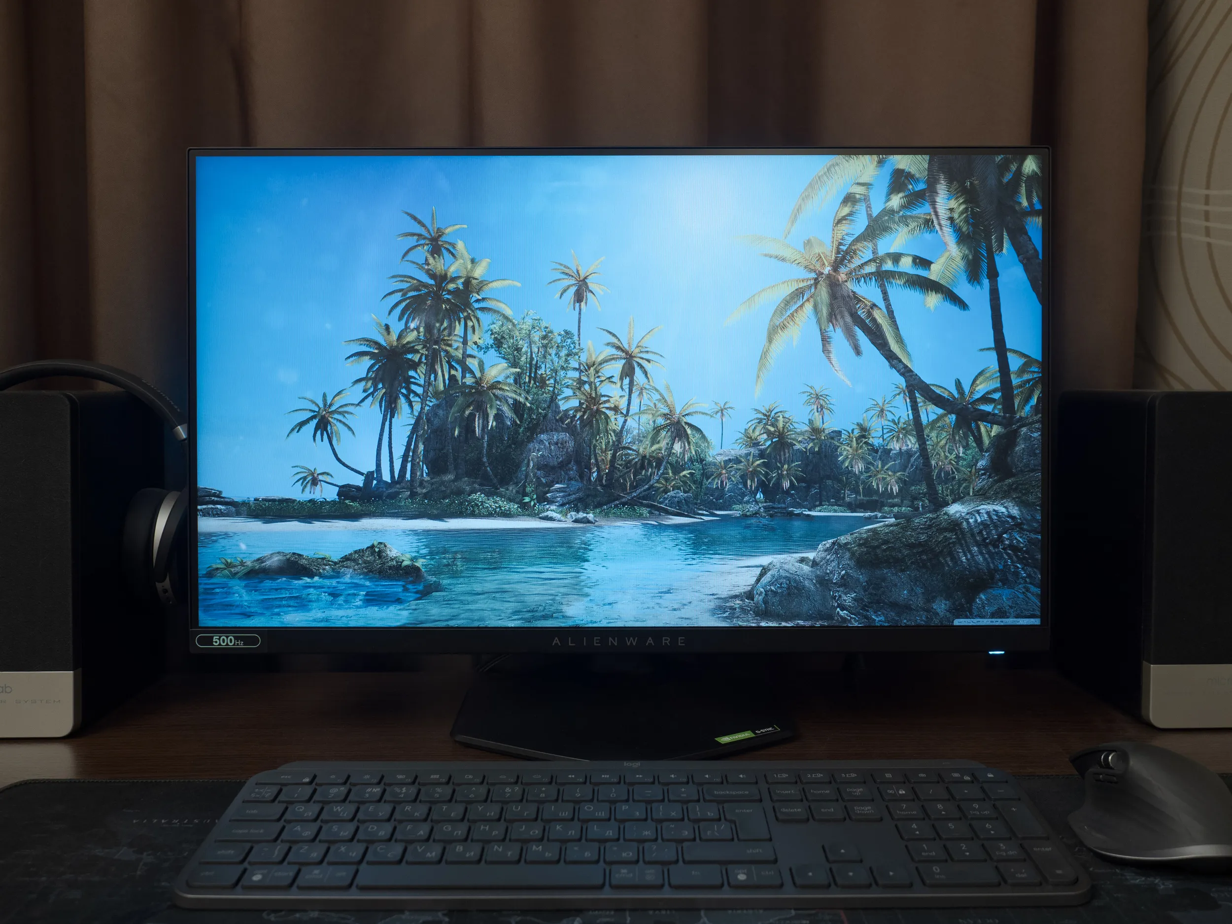 В наличии у Alienware функция оценки инпут-лага NVIDIA Reflex Latency Analyzer, встроенный датчик внешней освещённости для автоматической регулировки яркости подсветки и, само собой, футуристичный внешний вид с системой подсветки внешнего пространства AlienFX Lighting. Производитель говорит о 99 % покрытии цветового пространства sRGB и поддержке HDR с полученным сертификатом соответствия VESA DisplayHDR 400.