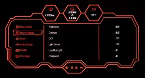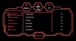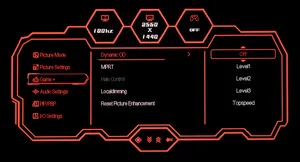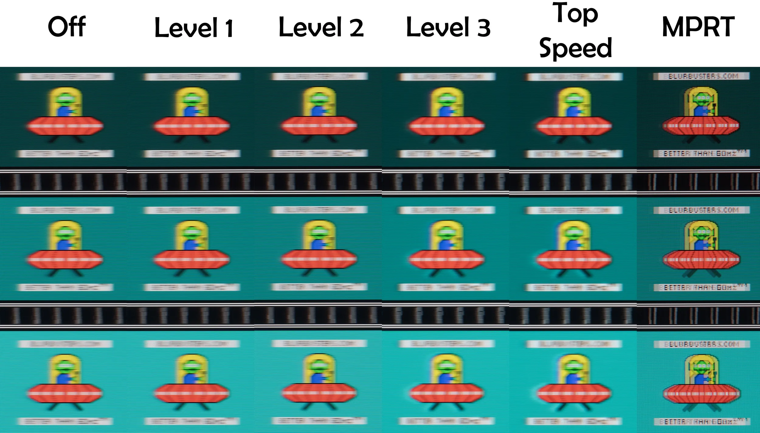 Отдельного внимания заслуживает режим "вставки чёрного кадра" MPRT, который значительно улучшает чёткость движущихся объектов на экране, но почти полное выключение подсветки происходит до 180 раз в секунду. Следует учитывать, что активация этого режима приводит к повышенной нагрузке на глаза и снижению яркости экрана, причём возможность увеличения яркости в данном режиме отсутствует.