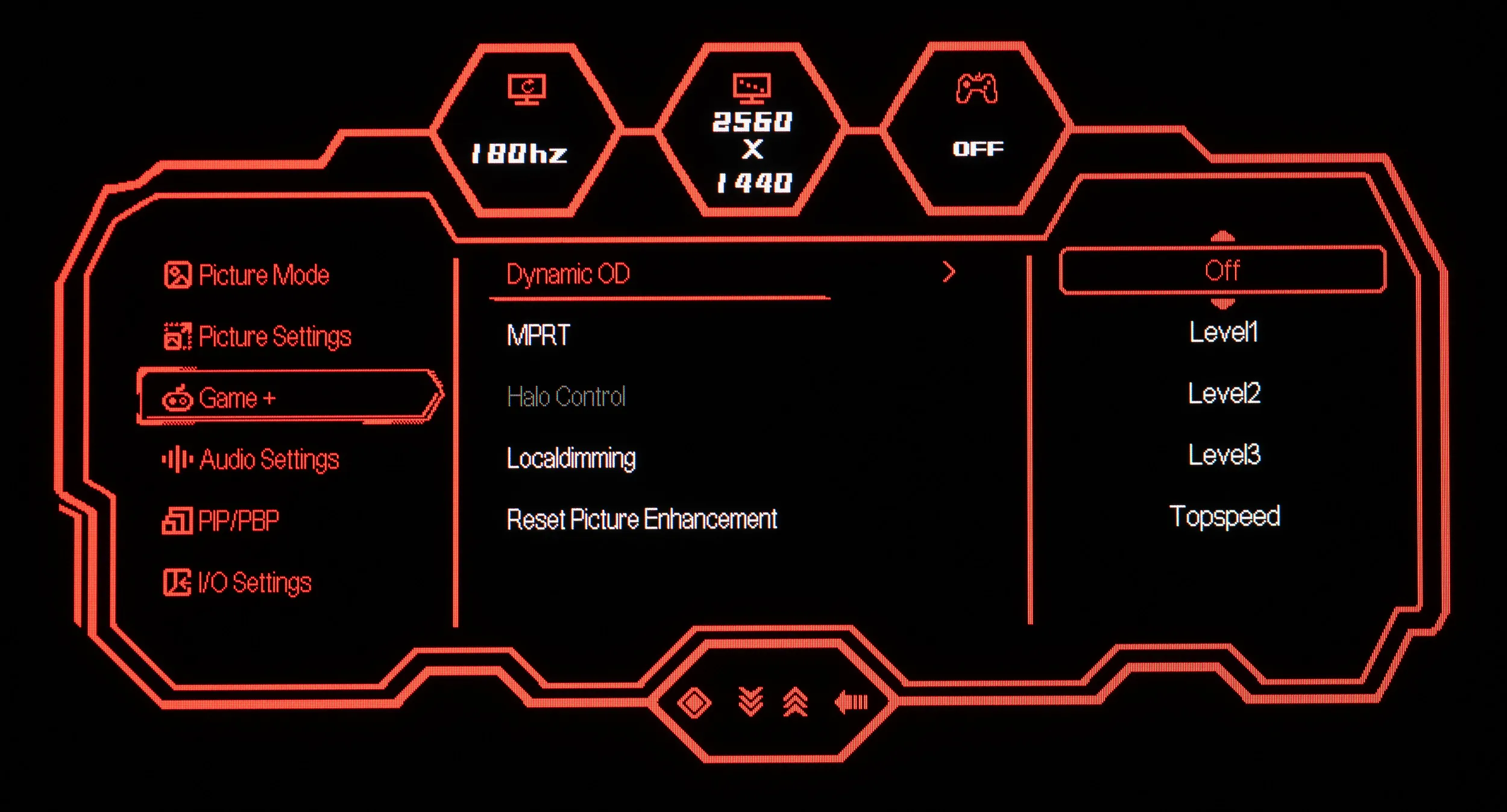 Тестирование монитора Action S показало, что он обладает достойными скоростными характеристиками. Монитор продемонстрировал уровень лучших 180 Гц IPS WQHD-моделей в изучаемом классе. Можно выбрать вариант работы без активного OD, а тем кому надо побыстрее — сразу перейти к Level 2.
