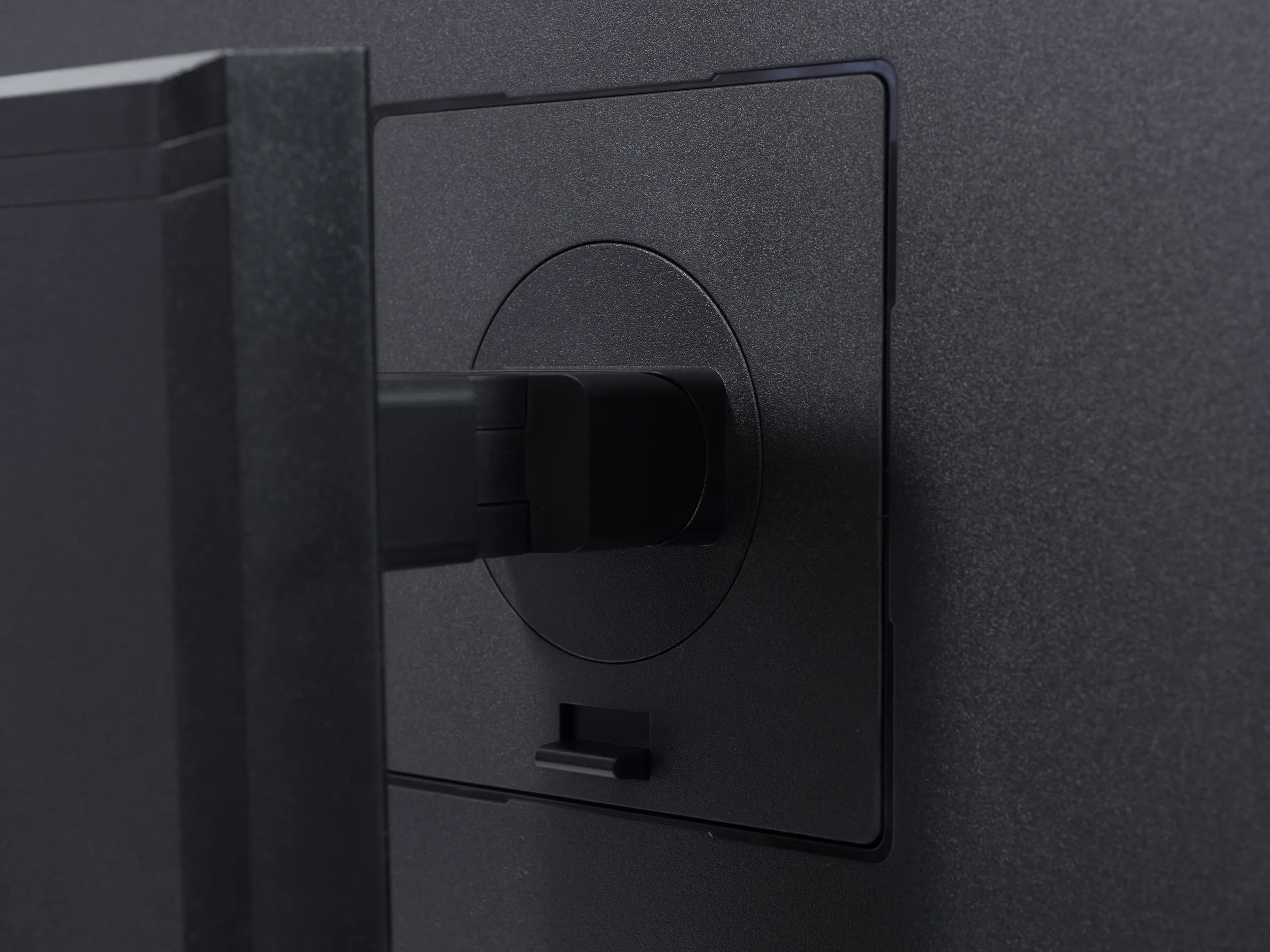 Система прокладки кабелей реализована через небольшой вырез в нижней части центральной стойки. На корпусе монитора есть система VESA-крепления стандарта 100 х 100 мм. Для её использования потребуется воспользоваться удлиняющими стойками из комплекта поставки.