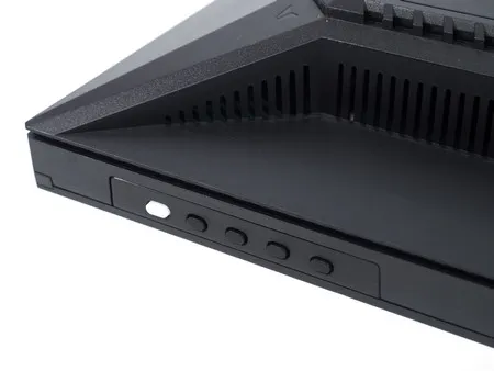 Система управления монитора Digma Pro Action S расположена на нижней грани корпуса с правой стороны. Управление осуществляется с помощью четырёх чёрных физических клавиш, а белая клавиша служит для включения/выключения устройства и индикации состояния.