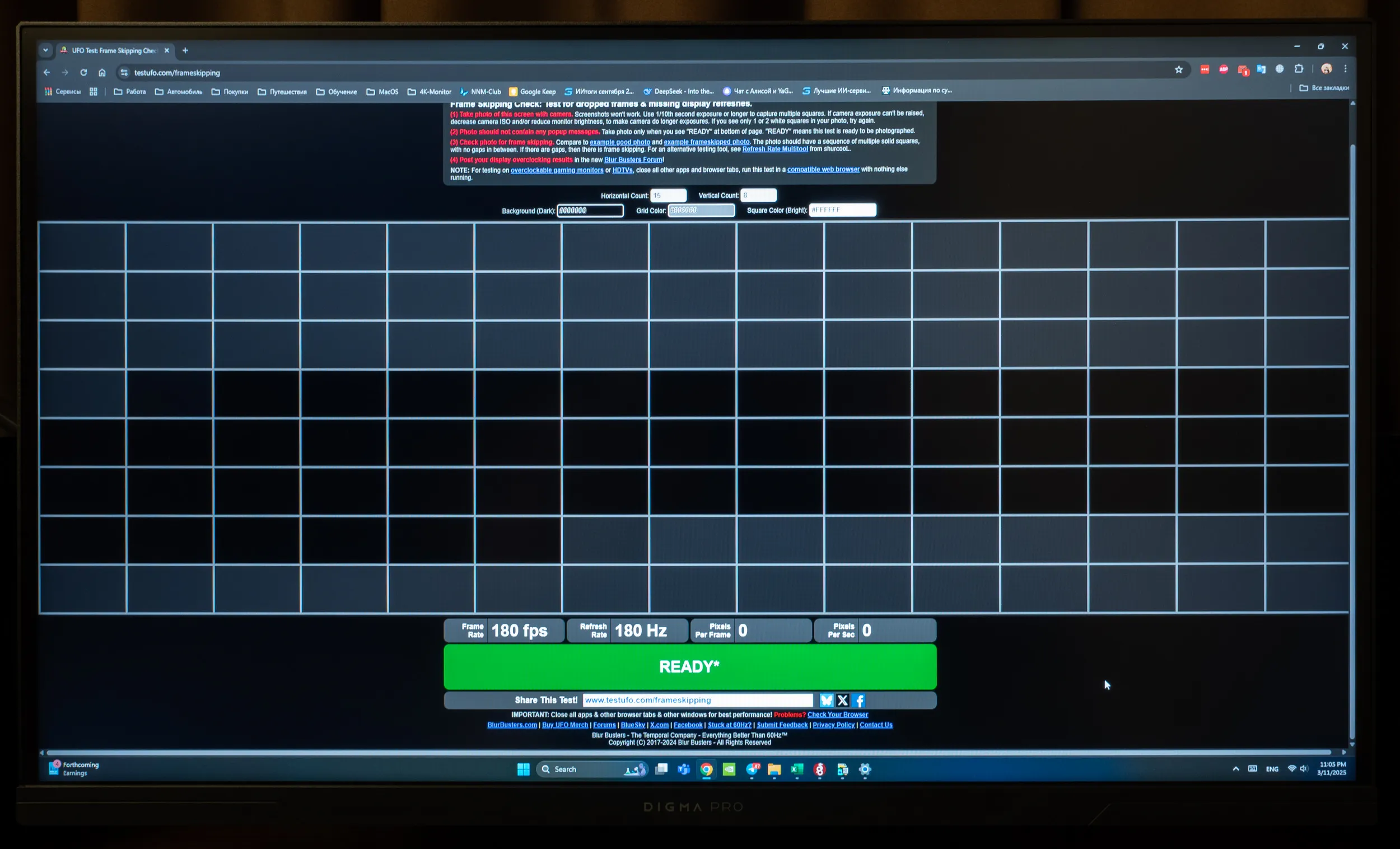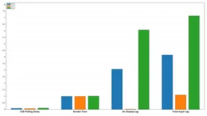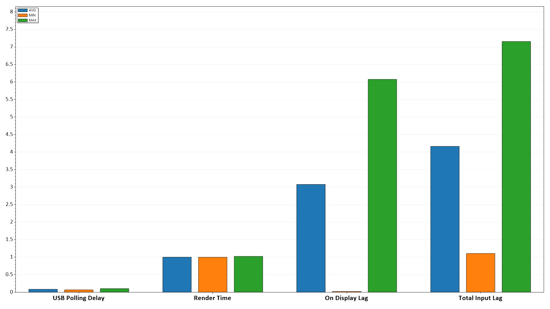 Задержка вывода изображения (input-lag) при подключении по DisplayPort 1.4 с DSC и установленной частотой 180 Гц, в среднем не превысила 3,1 мс при активированном G-Sync Compatible.