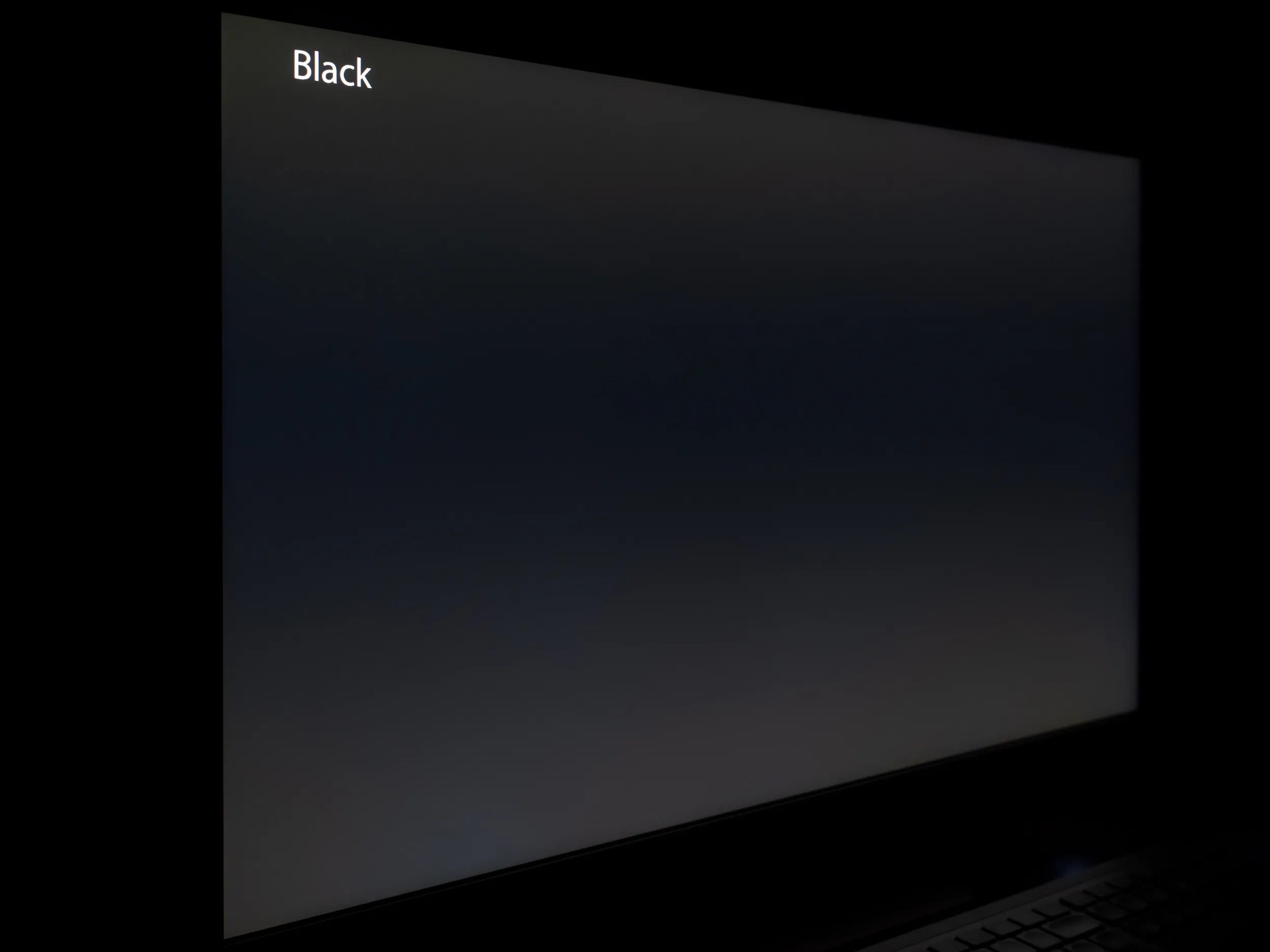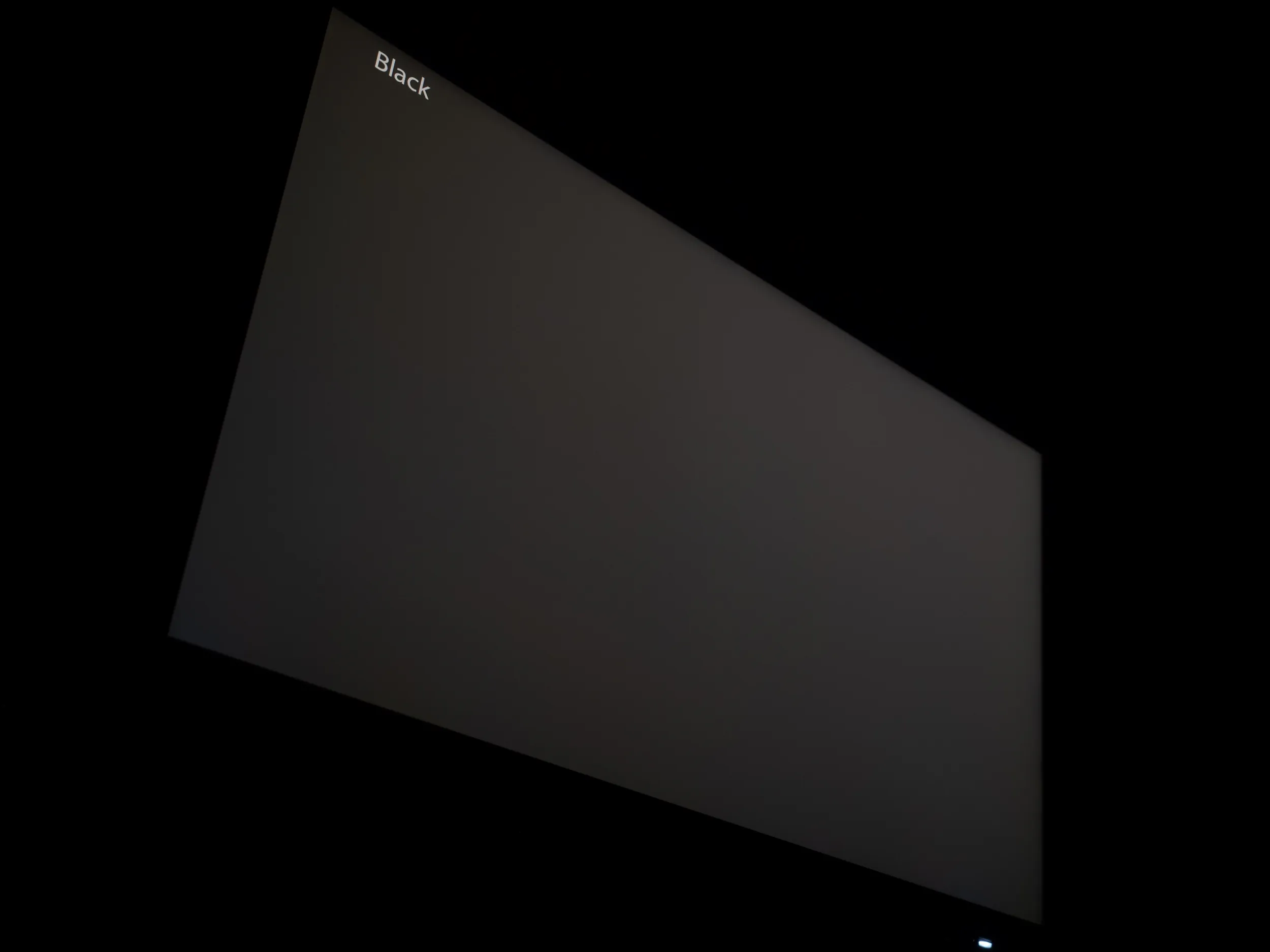 Теперь посмотрим на равномерность подсветки и различные цветовые эффекты в случае с чёрным полем. Сделаем мы это по двум фотографиям, снятым на разном удалении от экрана (~70 и 150 см).