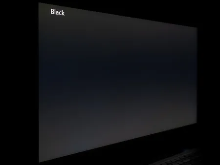 При рассмотрении монитора с большого расстояния наблюдается высокая равномерность подсветки на чёрном фоне — отсутствуют какие-либо значимые зоны с дефектами, что является положительным моментом. Небольшие пятна в нижней части экрана за серьёзные дефекты воспринимать нельзя — это допустимое явление, особенно для модели со сложной Mini-LED-подсветкой. .