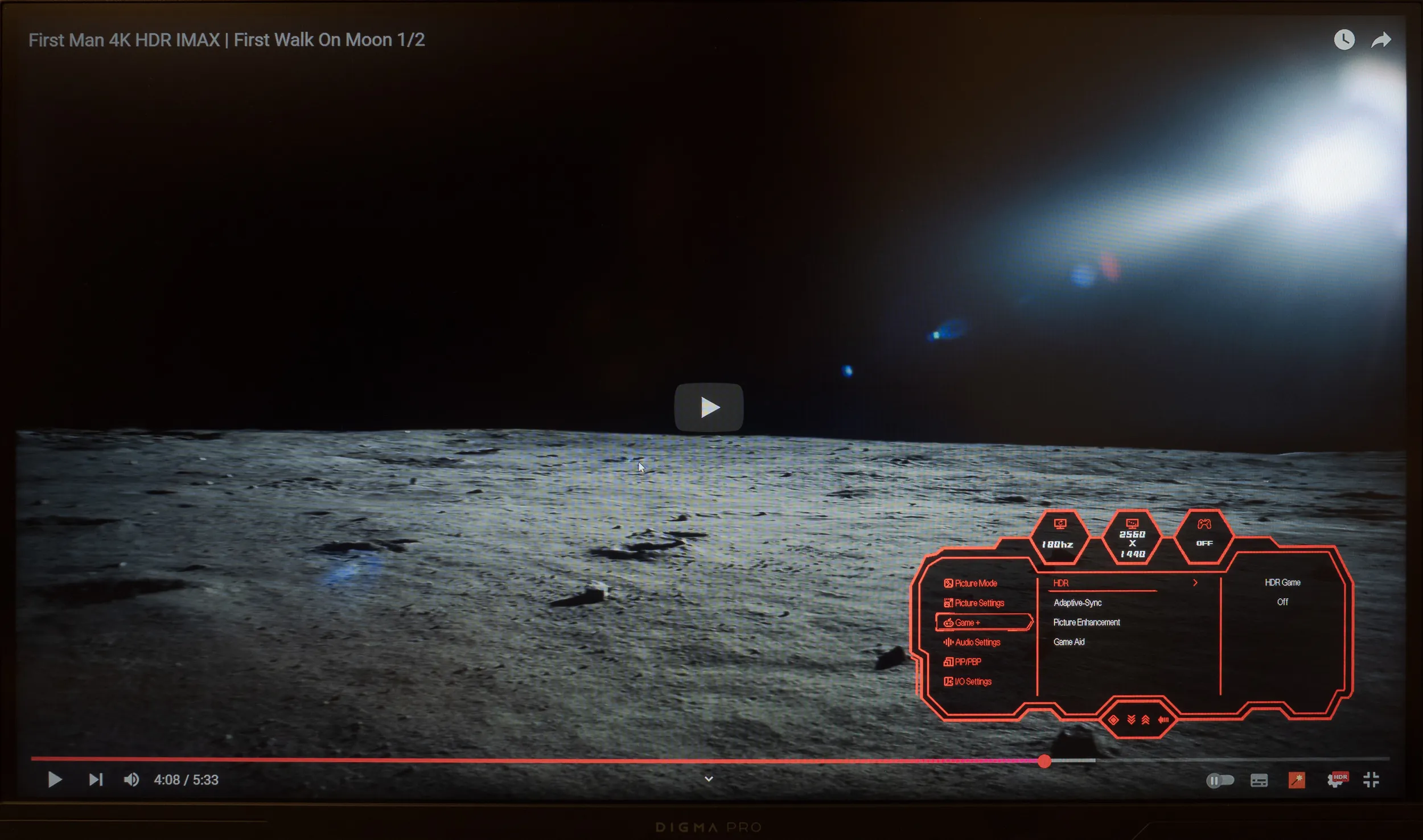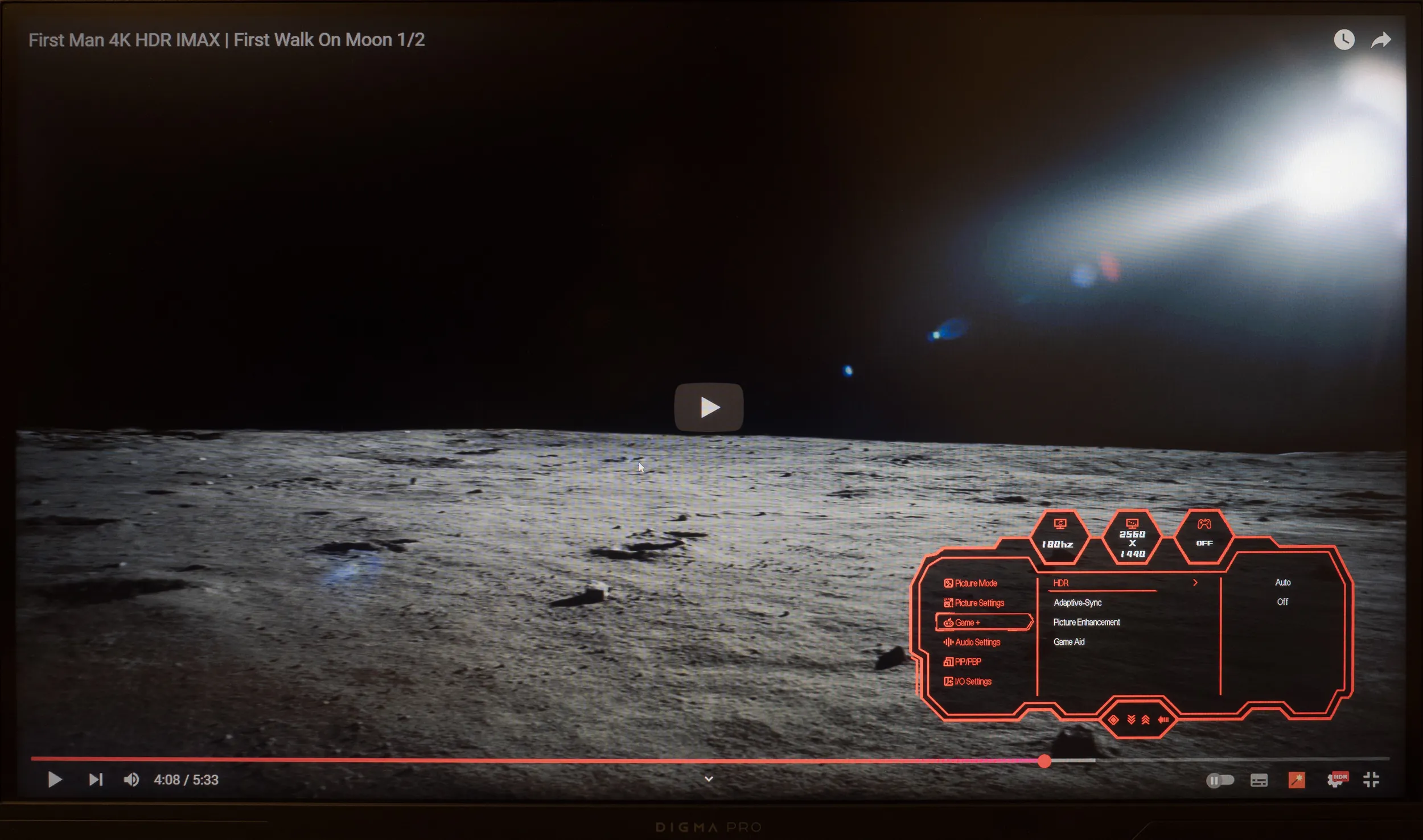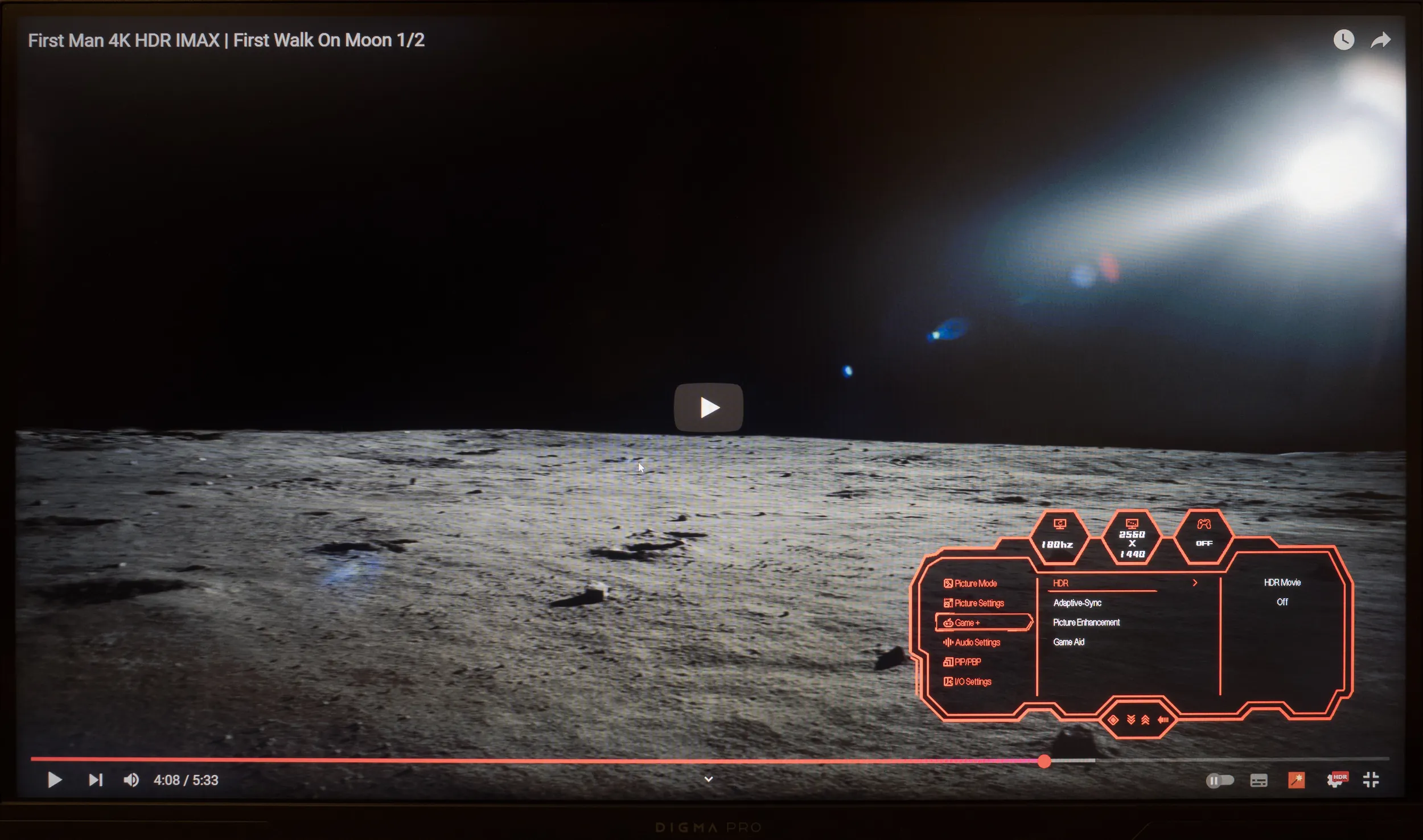 Немного поговорим про работу монитора Digma Pro Action S в режимах HDR. В ходе изучения форумов и специализированных чатов стало известно, что у пользователей возникают определённые нарекания, связанные с проработкой сложных яркостных переходов в части режимов представления HDR. В частности, речь идёт о базовом HDR Auto и HDR Movie.