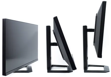 Эргономичная подставка позволяет наклонять монитор в диапазоне от -5 до +20 градусов, поворачивать корпус на 30 градусов в обе стороны и регулировать высоту на 125 мм. Особенно удобно, что монитор можно опустить практически вплотную к рабочей поверхности.
