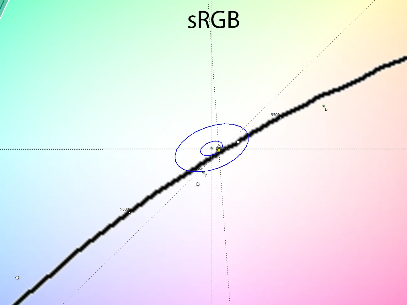 По умолчанию настройка точки белого довольно близка к референсу, сохраняется в режимах эмуляции, а после многочасового прогрева (свыше 4-5 часов) ЦТ стабилизируется и вовсе максимально близко к 6500К (актуально для протестированного экземпляра) без какого-либо паразитного оттенка.
