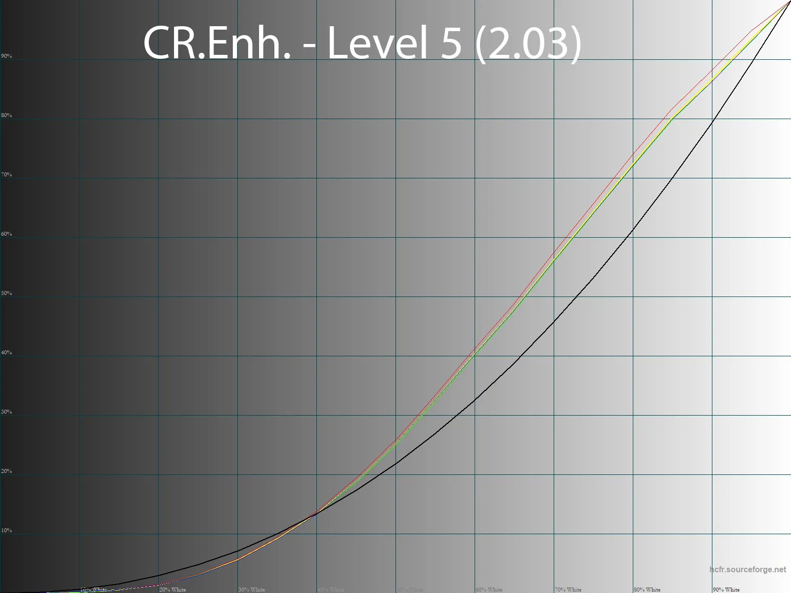 Теперь оценим ещё один модификатор гамма-кривых под названием CR-Enhancement («улучшитель коэффициента контрастности»). По умолчанию функция дезактивирована, доступны уровни от 1 до 5.