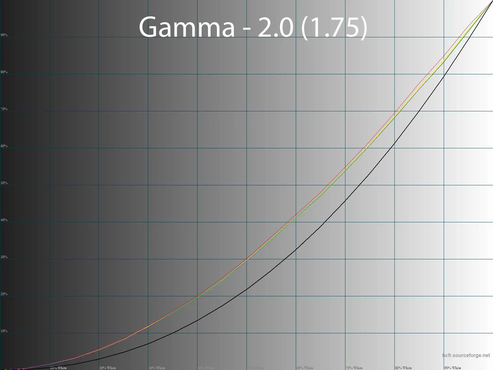 Теперь посмотрим на доступные режимы гаммы. Напомним, что по умолчанию установлено значение 2.2, являющееся оптимальным для большинства рабочих задач, особенно если вам важна хорошая различимость в тенях. В скобках на каждой картинке указано фактическое среднее значение гаммы, полученное в ходе измерений.