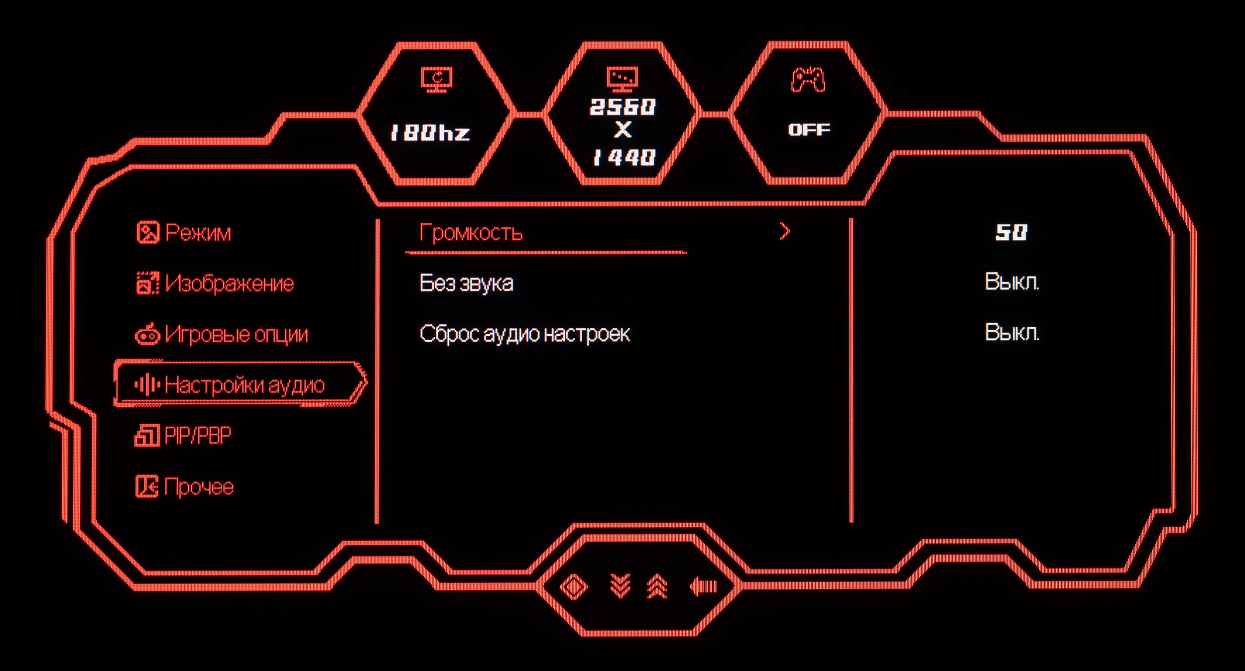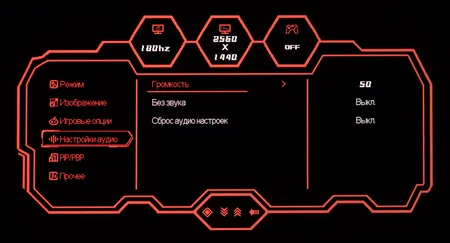 Четвёртый раздел представлен под названием «Настройки аудио». Тут всего пару опций — регулировка громкости, режим Mute и сброс всех настроек по умолчанию.