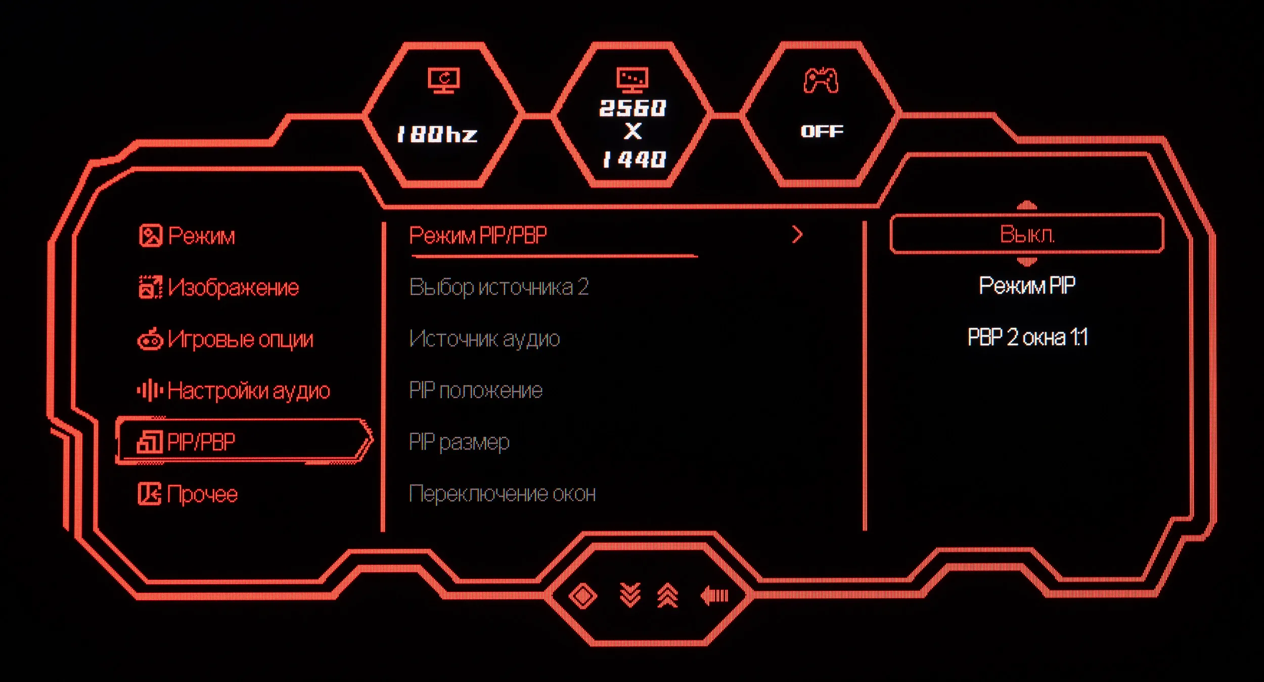 Раздел PiP/PbP предоставляет базовые возможности для работы с несколькими источниками сигнала, позволяя выбирать различные варианты отображения изображений на экране.