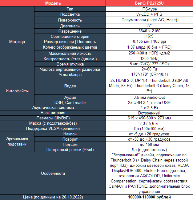 Для любителей читать только выводы - основные достоинства и недостатки BenQ PD2725U в краткой форме представлены ниже.