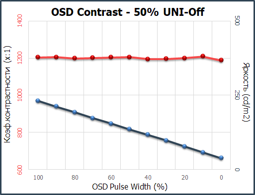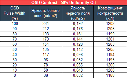 При дезактивации системы компенсации неравномерности, к нашему удивлению, увеличилась только минимальная яркость, а максимальная упала до 231 нит, что не повлияло на резкое увеличение коэффициента контрастности до заводских 1200:1. Какова точность! BenQ молодцы!