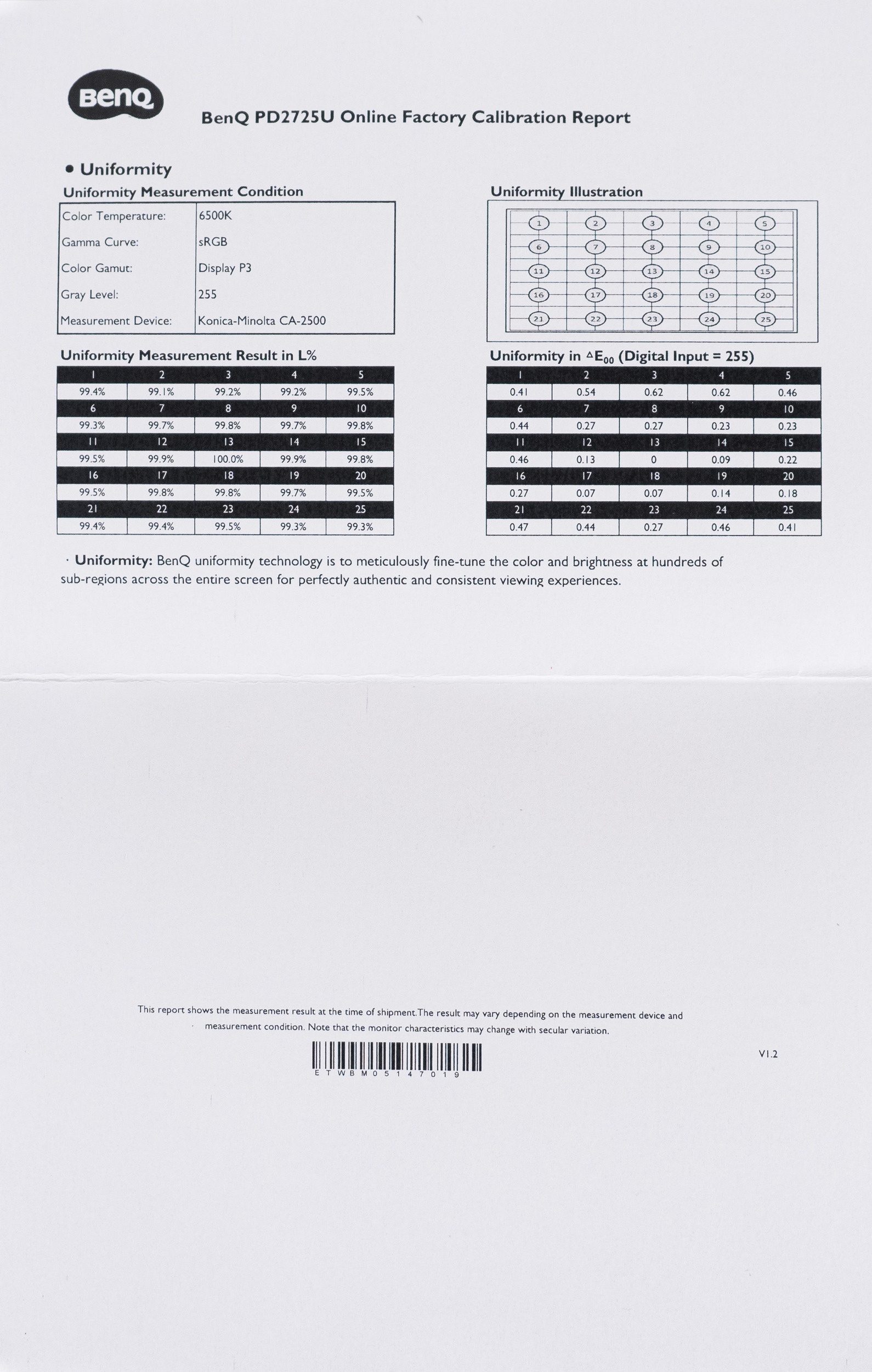 Не изменились результаты и после дезактивации функции компенсации неравномерности подсветки, что лишь подтвердило качественную и стабильную начинку монитора, а также все старания инженеров и программистов BenQ. Прямо скажем – на подобное способны единицы мониторов на рынке, а PD2725U оказался среди них.