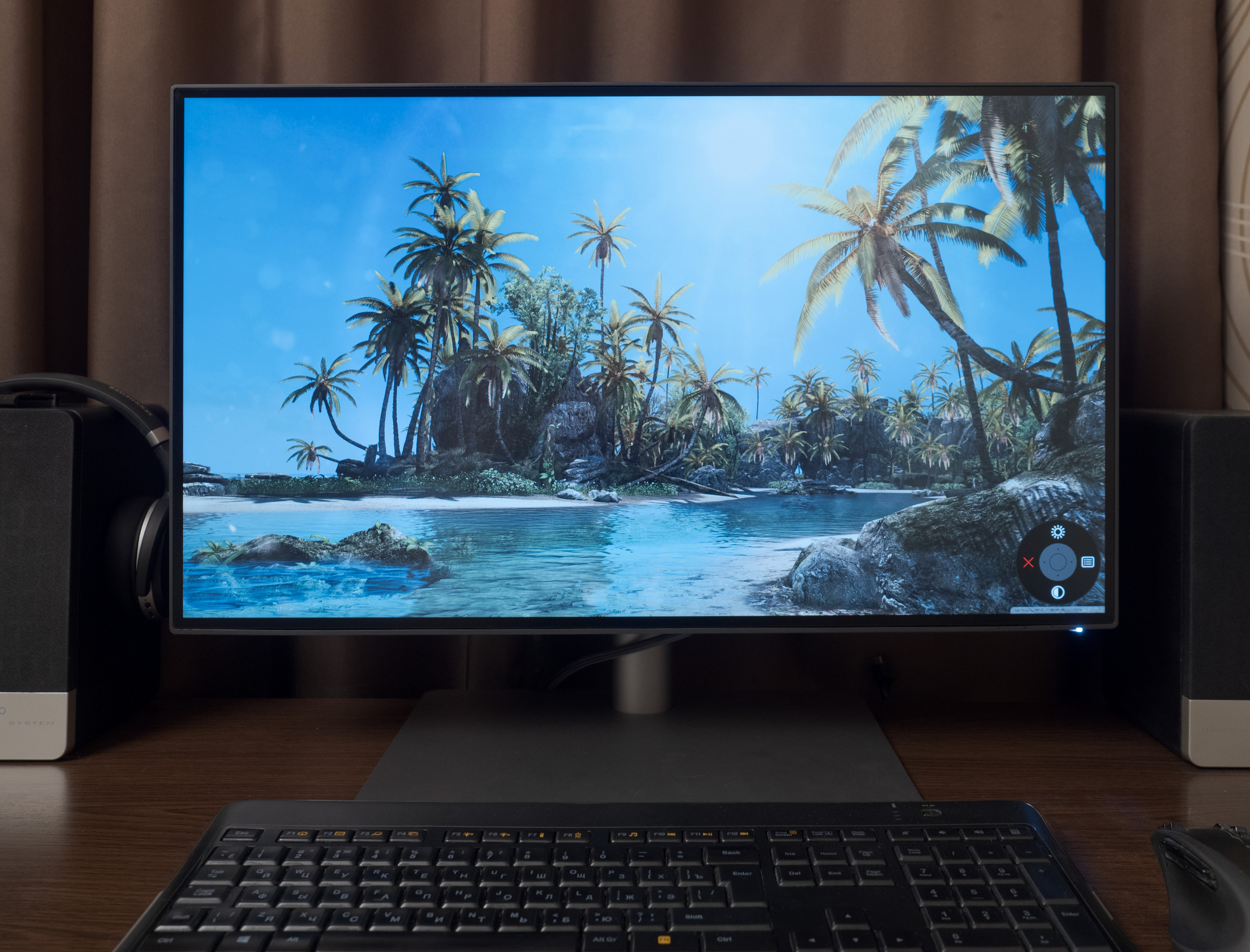 Система управления PD2725U построена на базе пятипозиционного джойстика и трёх клавиш (одна питания и две для быстрого доступа), размещённых на задней части корпуса, с правой стороны.