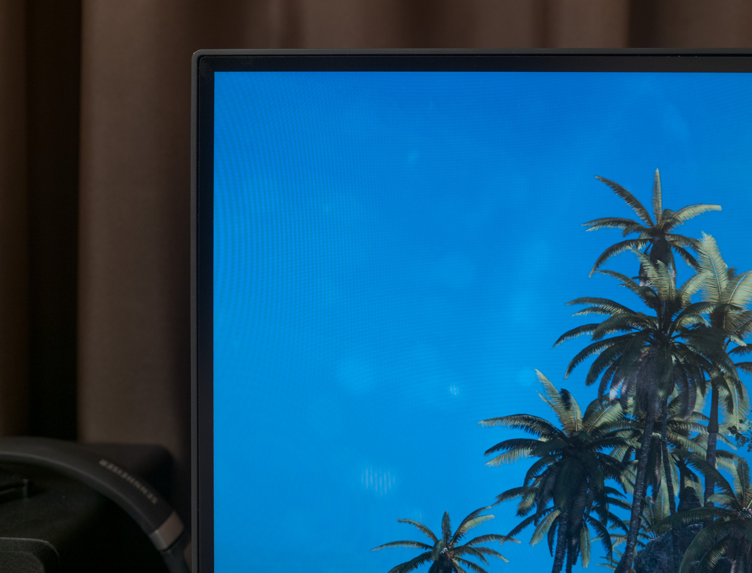 При отдалении от экрана Glow полностью исчезает и остаются еле заметные полосы с паразитным оттенком по двум краям. Результат отличный, идём дальше.