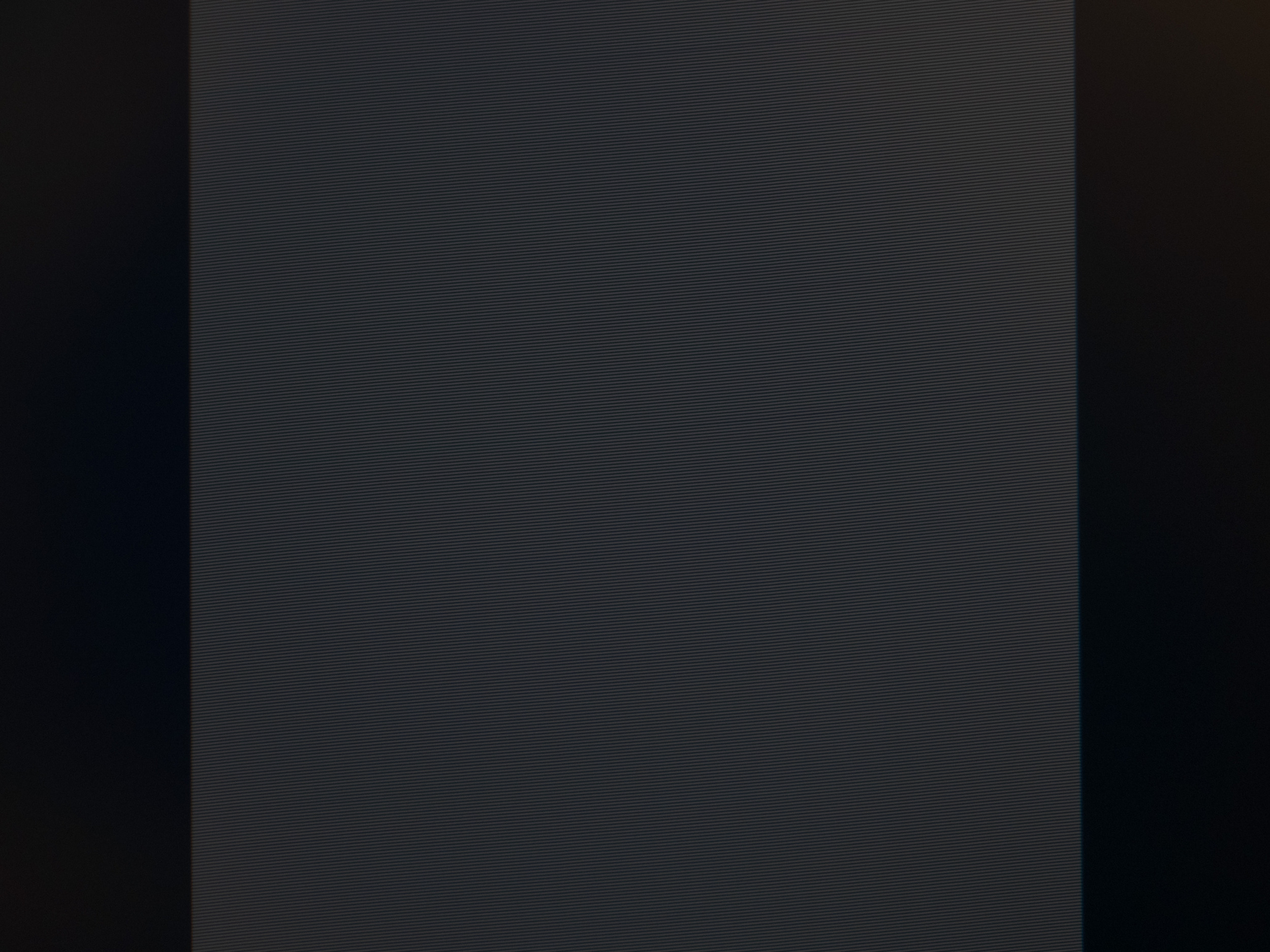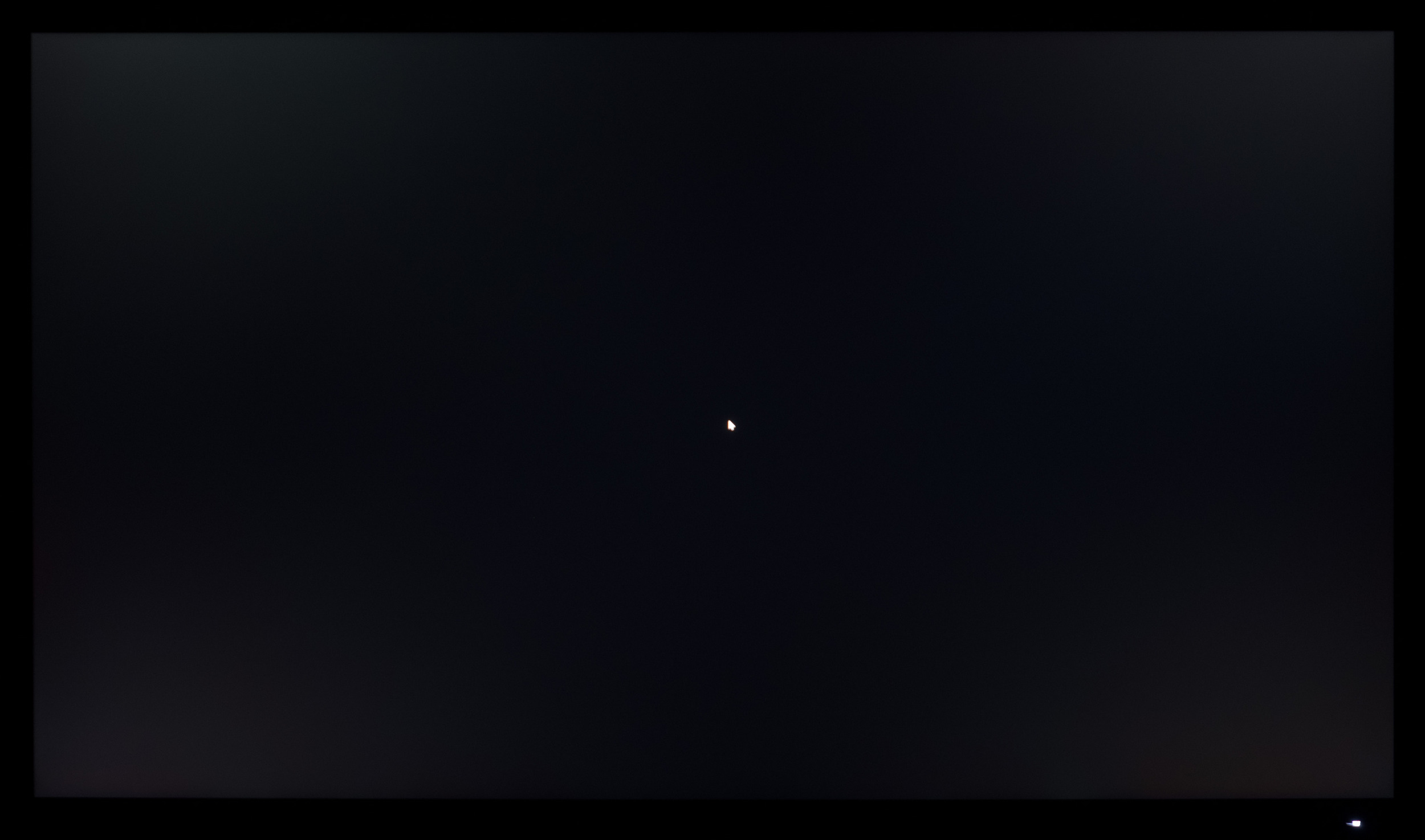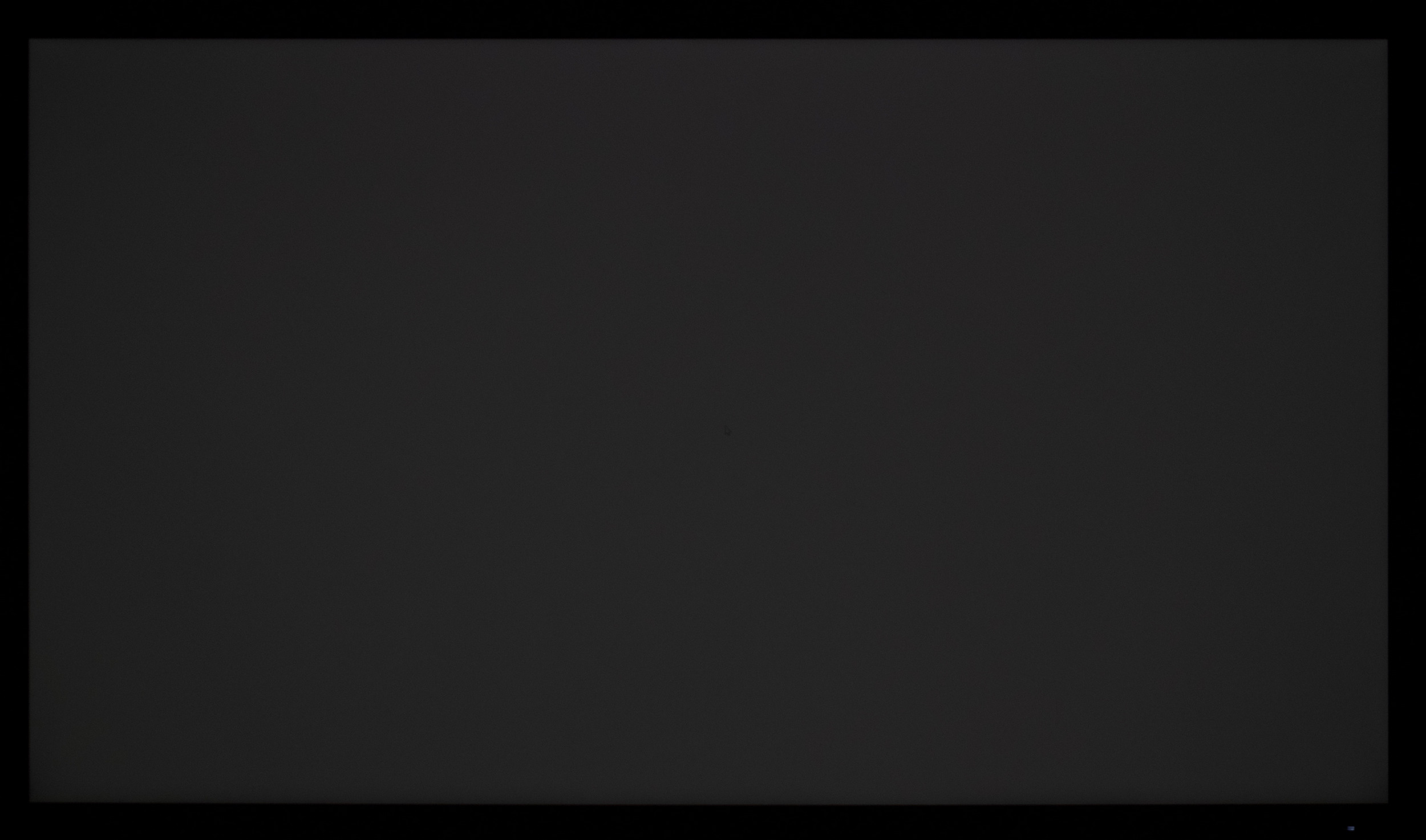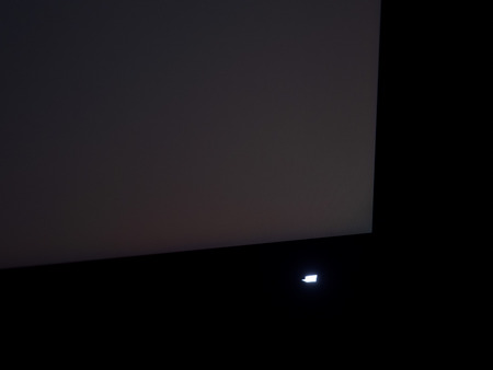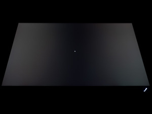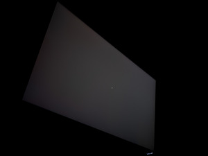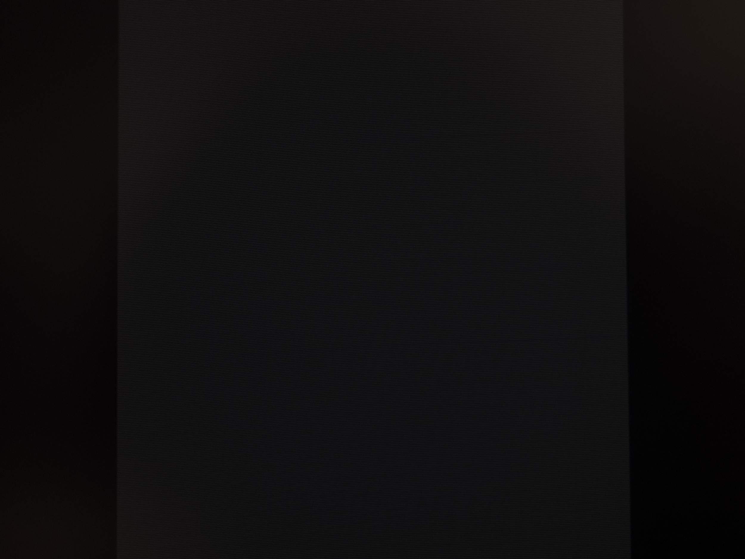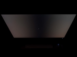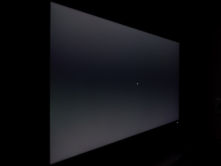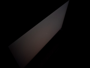 Теперь рассмотрим черный фон, оценив его «равномерность» по двум фотографиям, сделанным на разном отдалении от экрана (~70 см и 150 см), чтобы вы могли наглядно оценить влияние уже всем надоевшего Glow-эффекта и узнать реальную равномерность подсветки без его учёта. Сразу скажем, что система компенсации на равномерность чёрного поля абсолютно никак не воздействует!