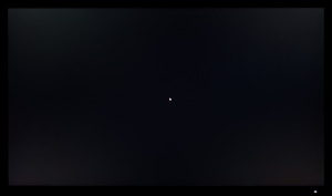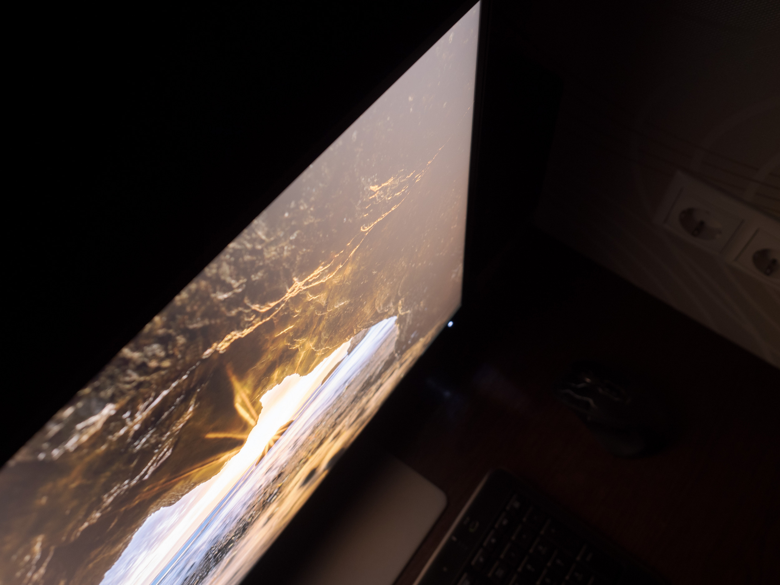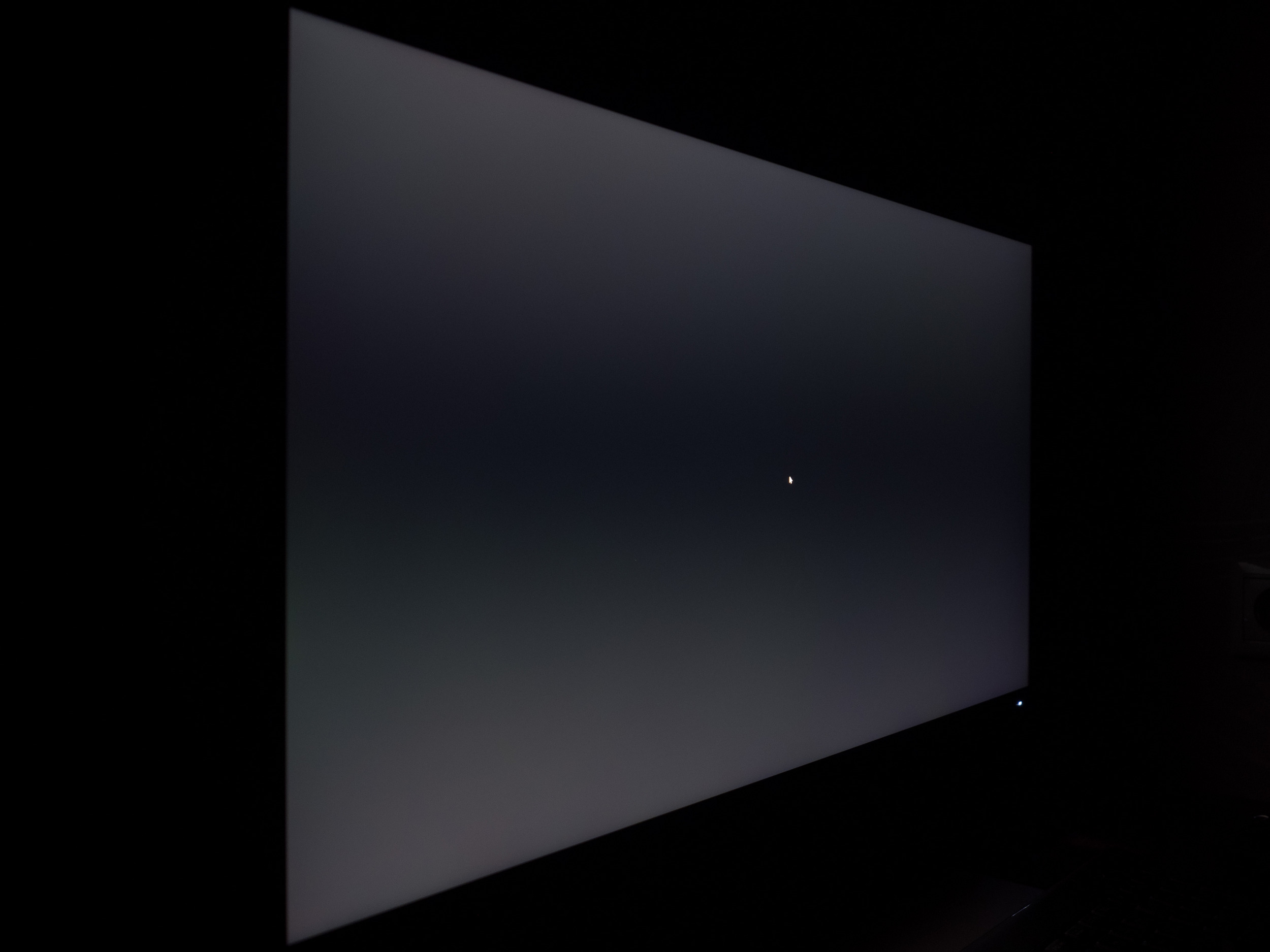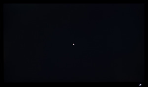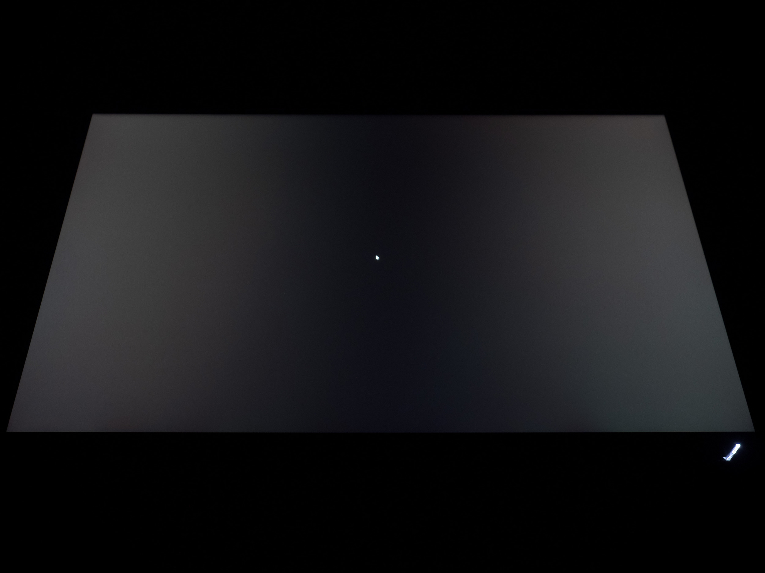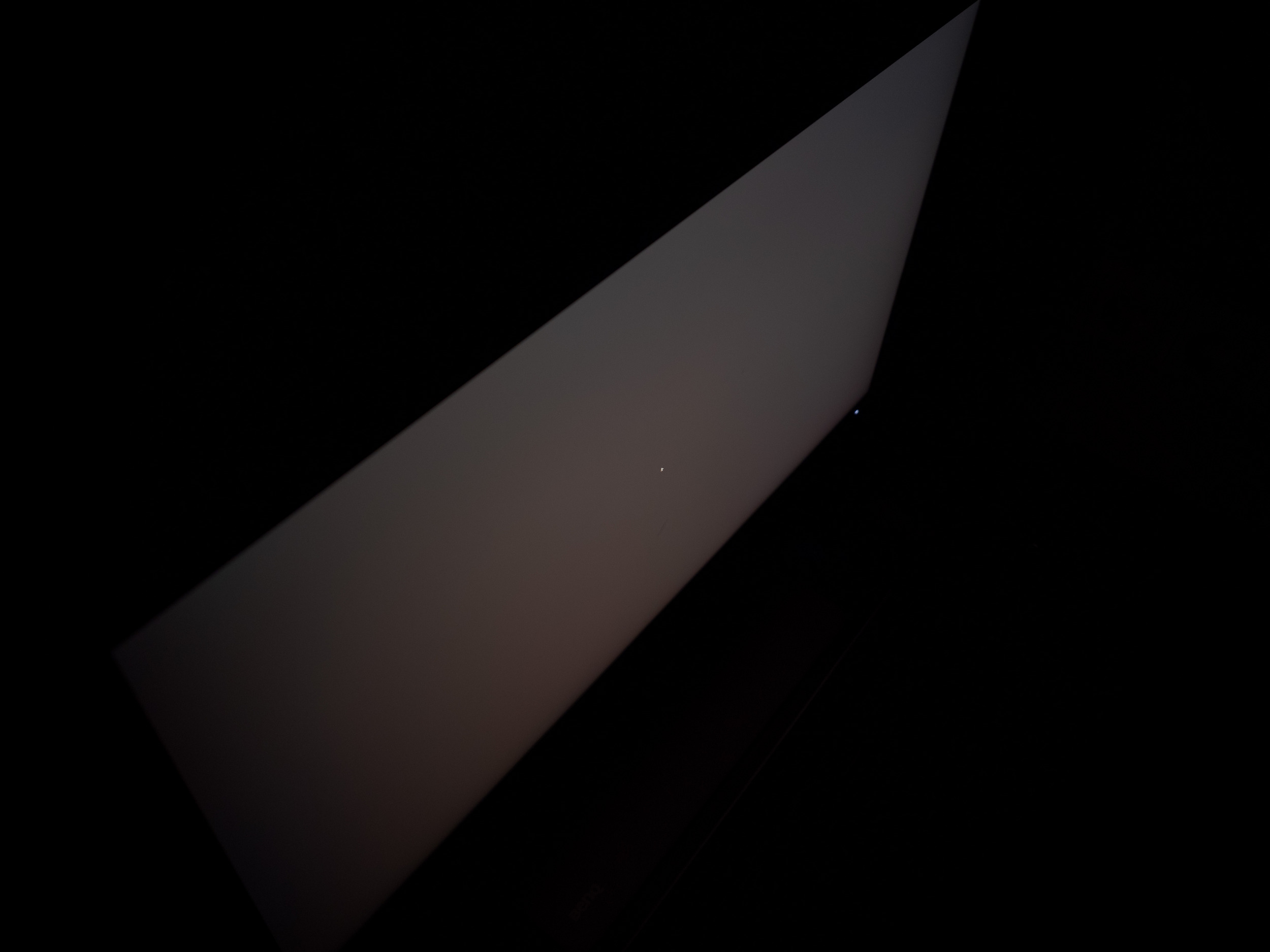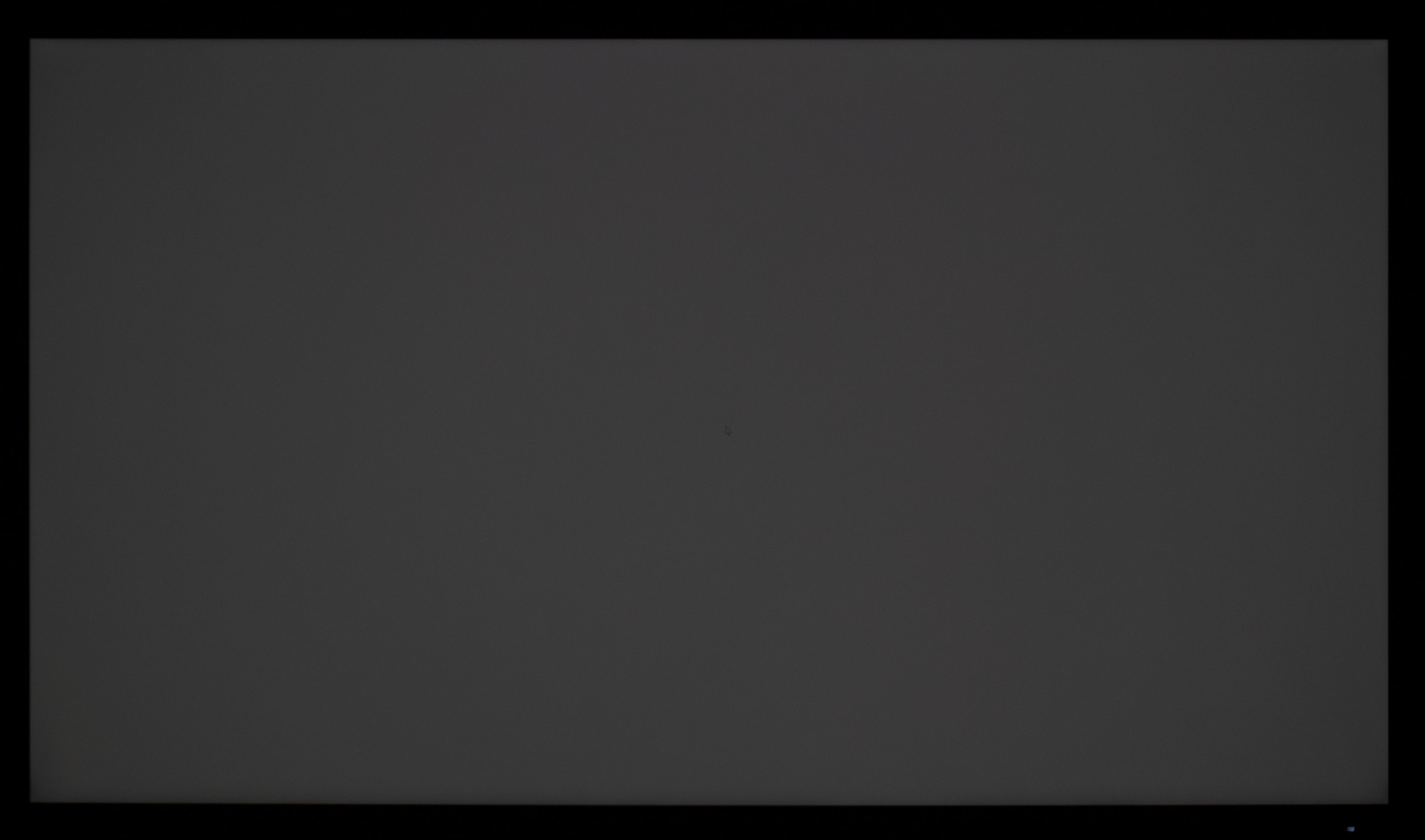 Теперь рассмотрим черный фон, оценив его «равномерность» по двум фотографиям, сделанным на разном отдалении от экрана (~70 см и 150 см), чтобы вы могли наглядно оценить влияние уже всем надоевшего Glow-эффекта и узнать реальную равномерность подсветки без его учёта. Сразу скажем, что система компенсации на равномерность чёрного поля абсолютно никак не воздействует!